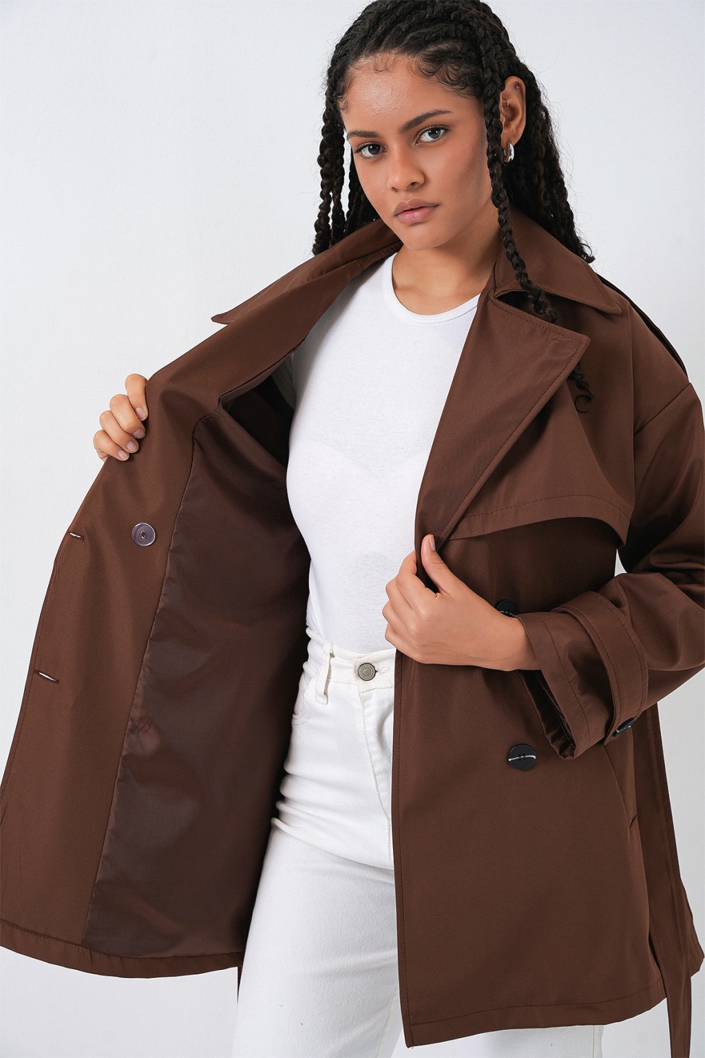 % 100 PolyesterKadin Kusakli Kisa Trençkot 5974