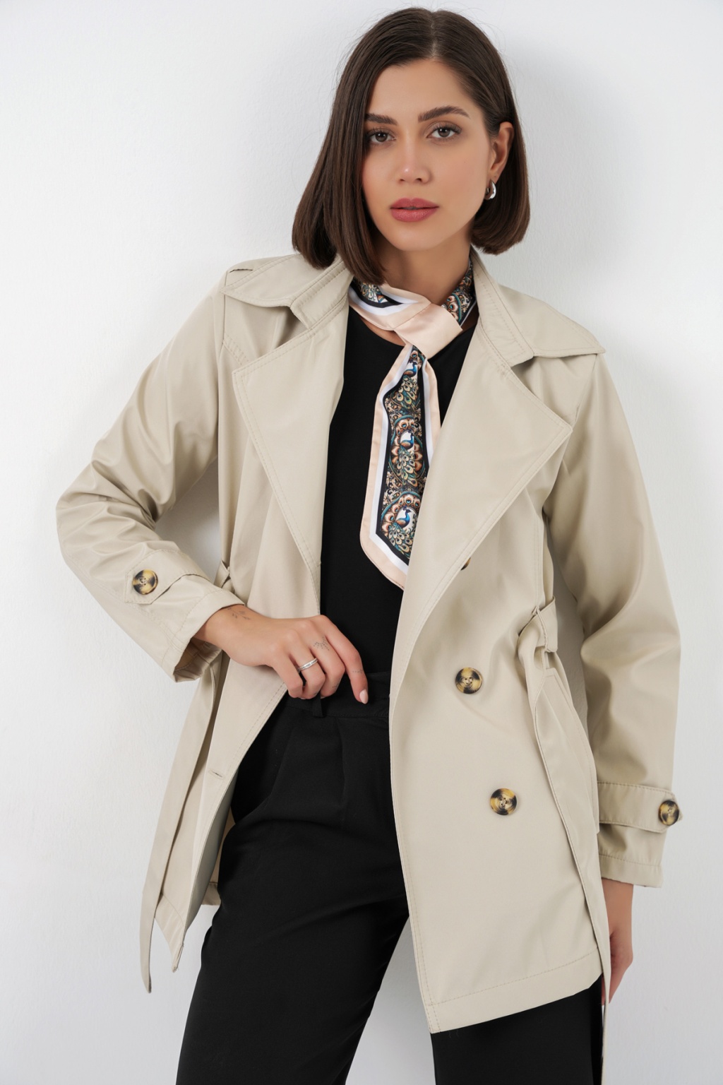Kadın Kuşaklı Kısa Trençkot 5982 - Bej