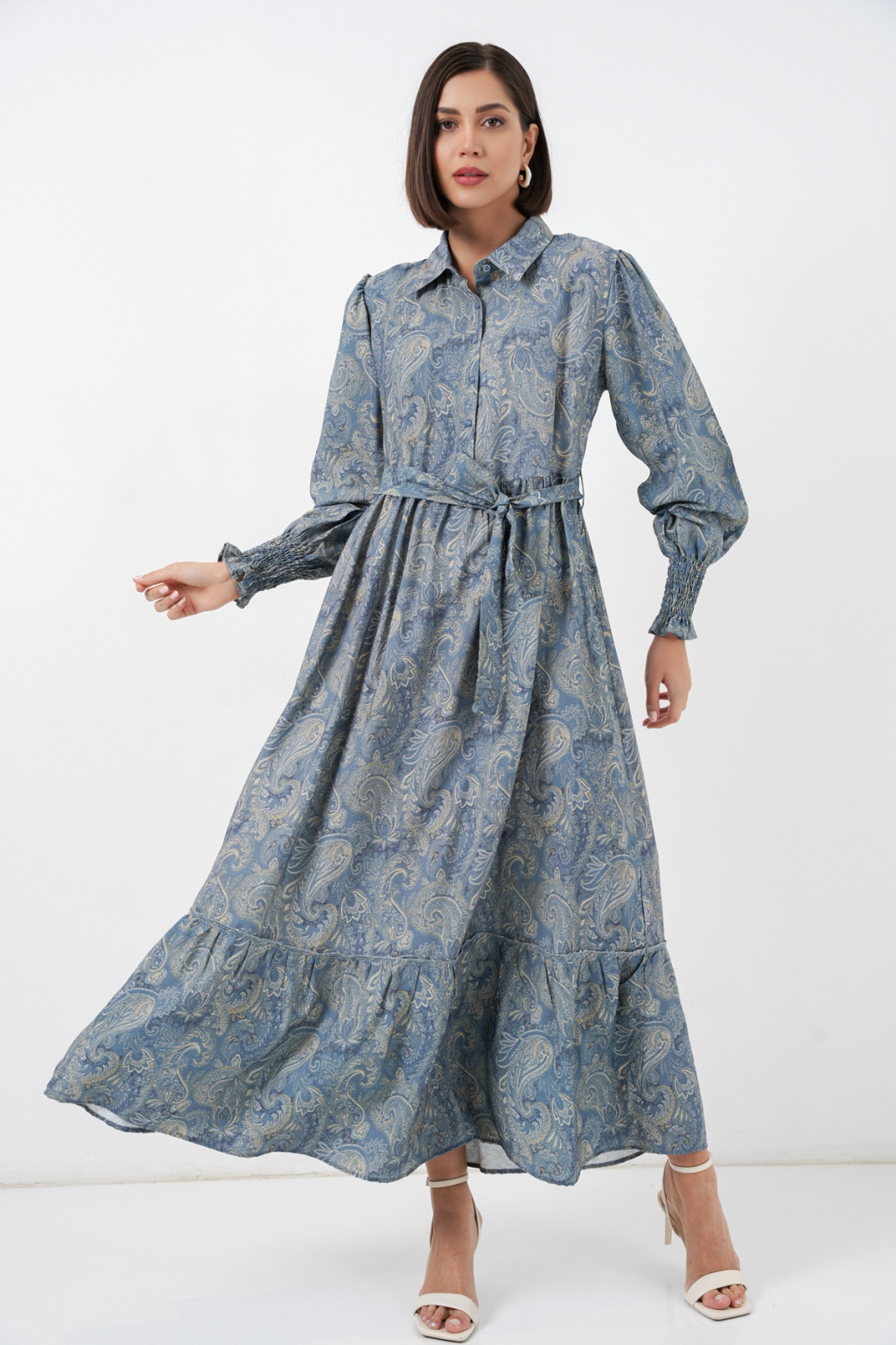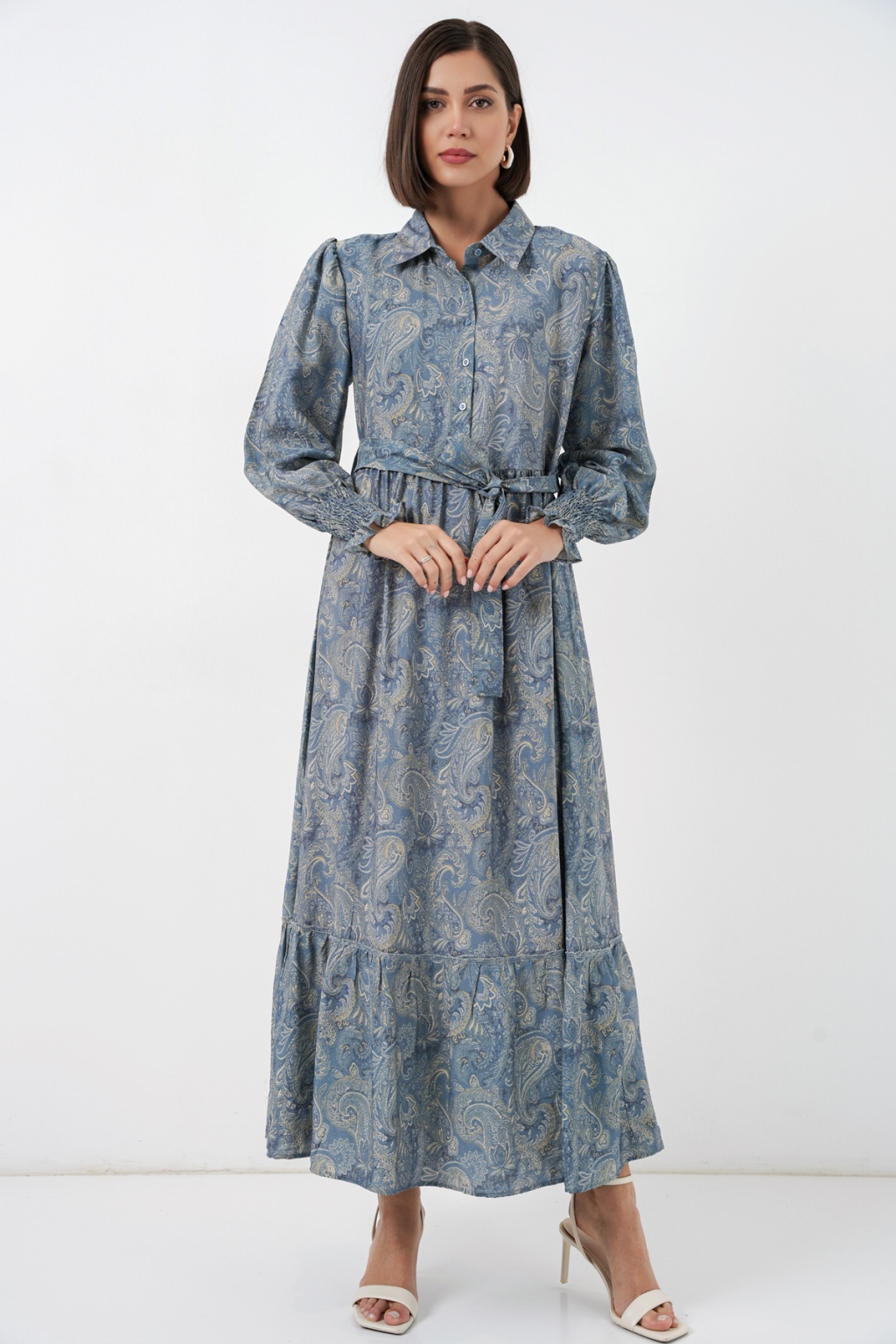 Kadın Kuşaklı Tesettür Elbise 2589 - Mint