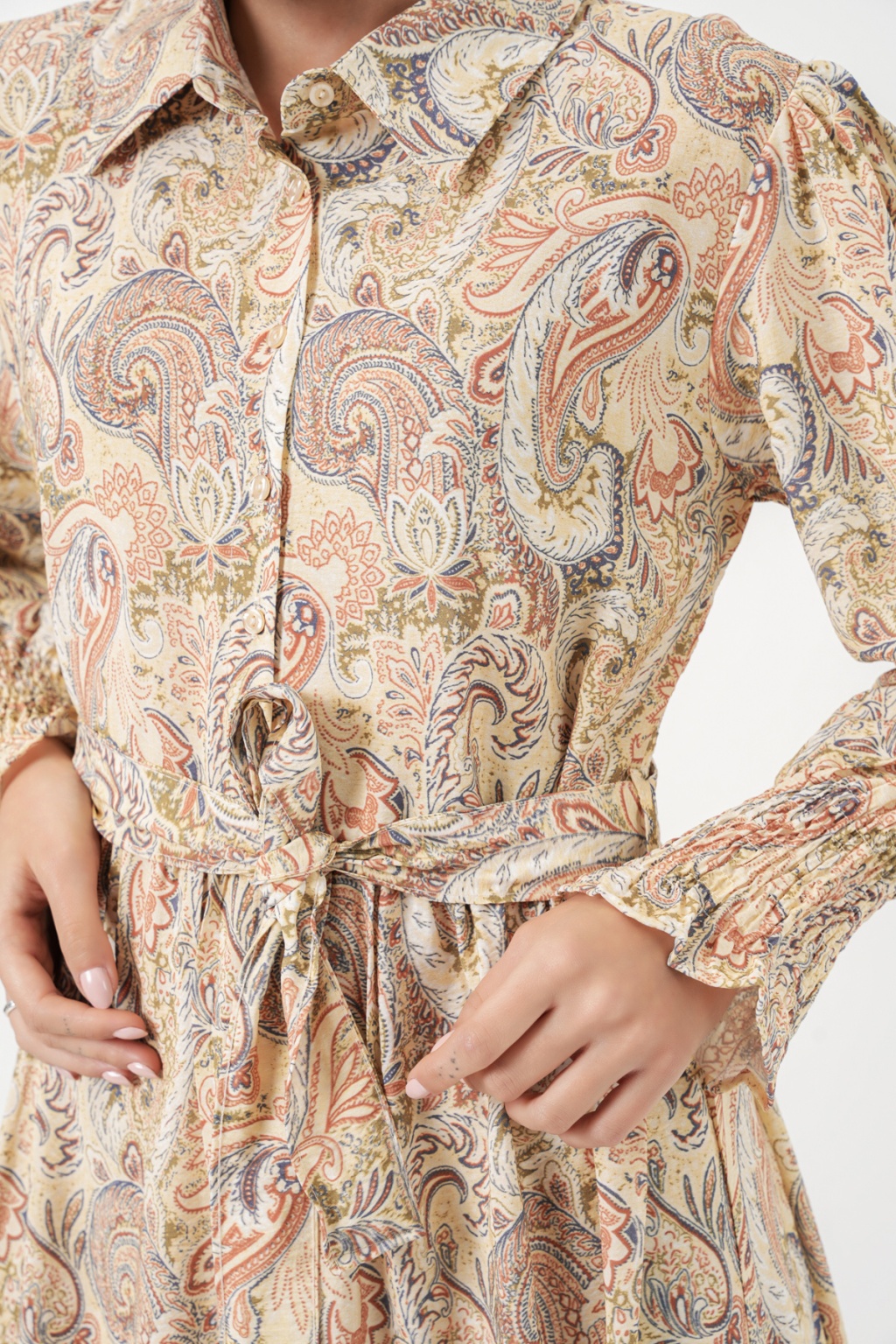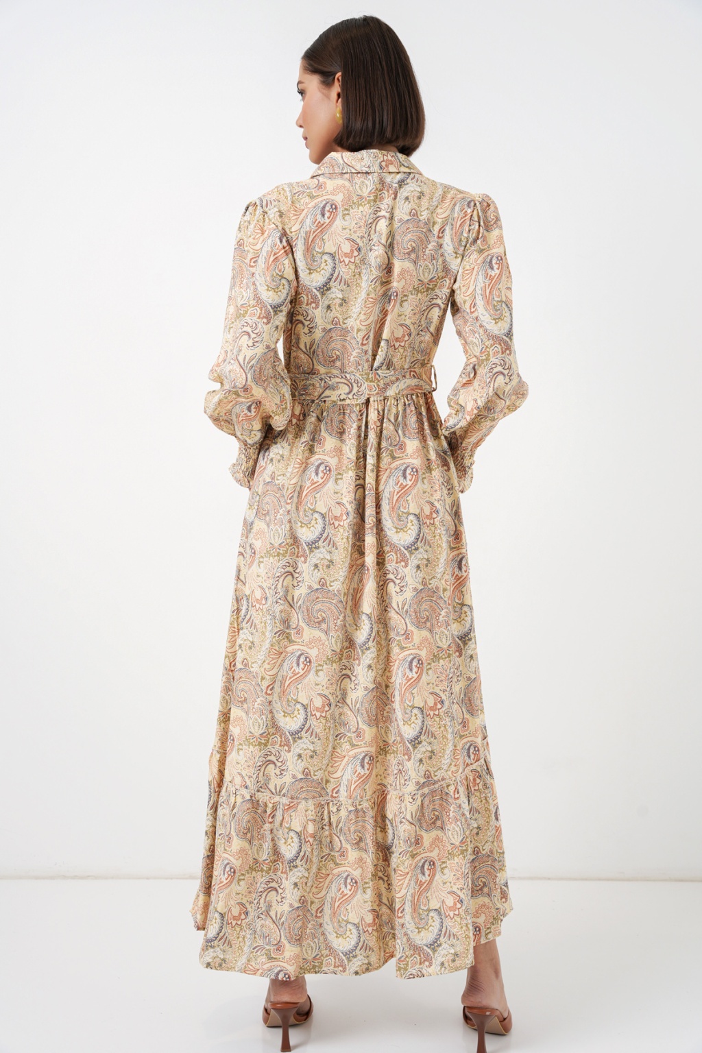 Kadın Kuşaklı Tesettür Elbise 2589 - Sarı