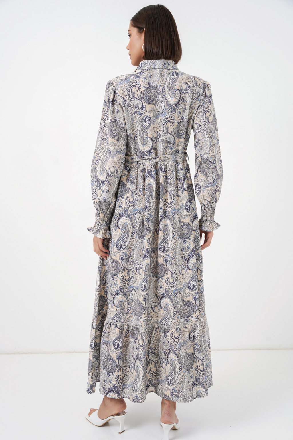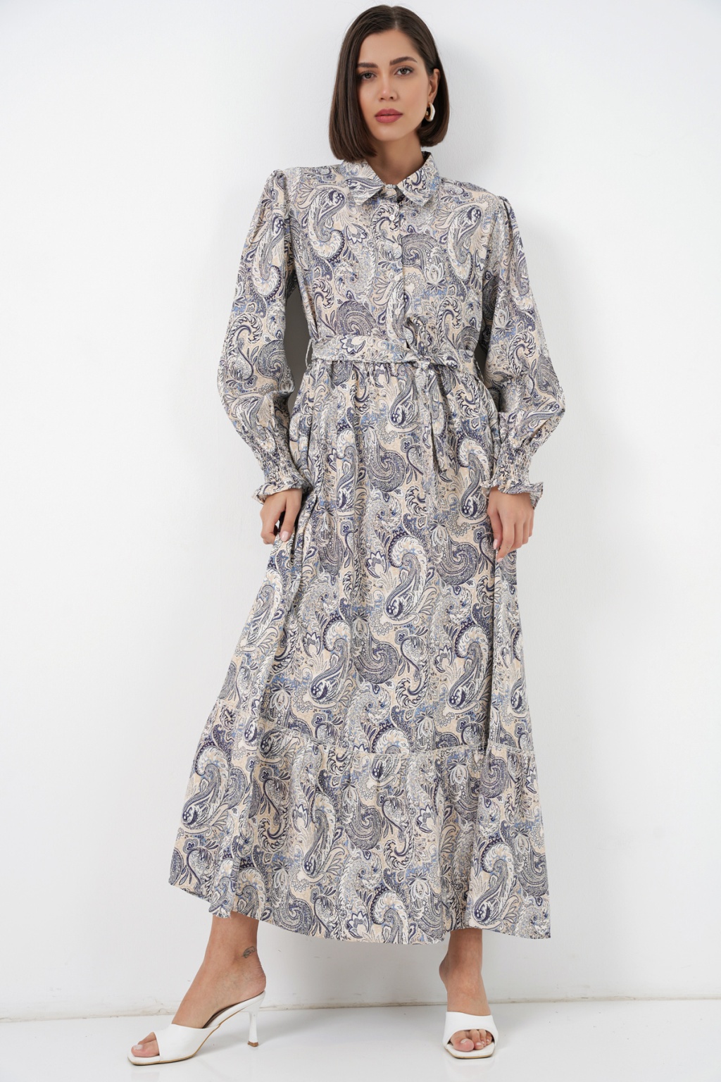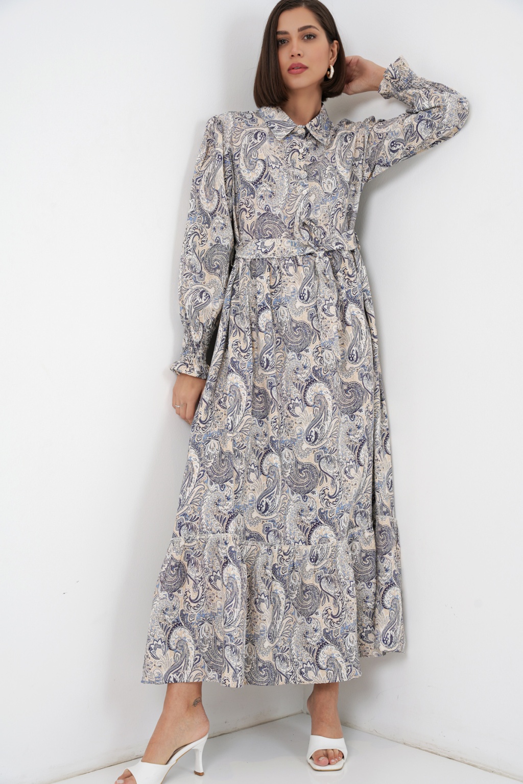 Kadın Kuşaklı Tesettür Elbise 2589 - Taş