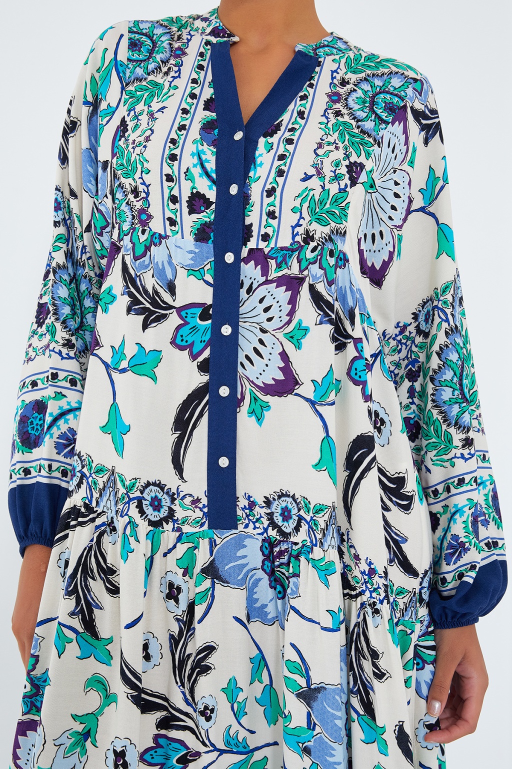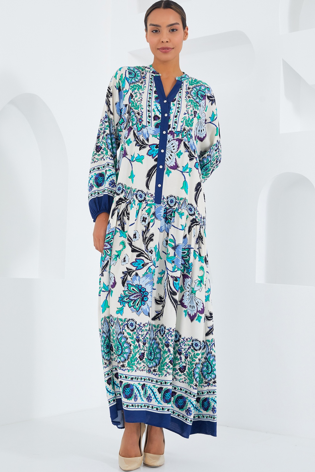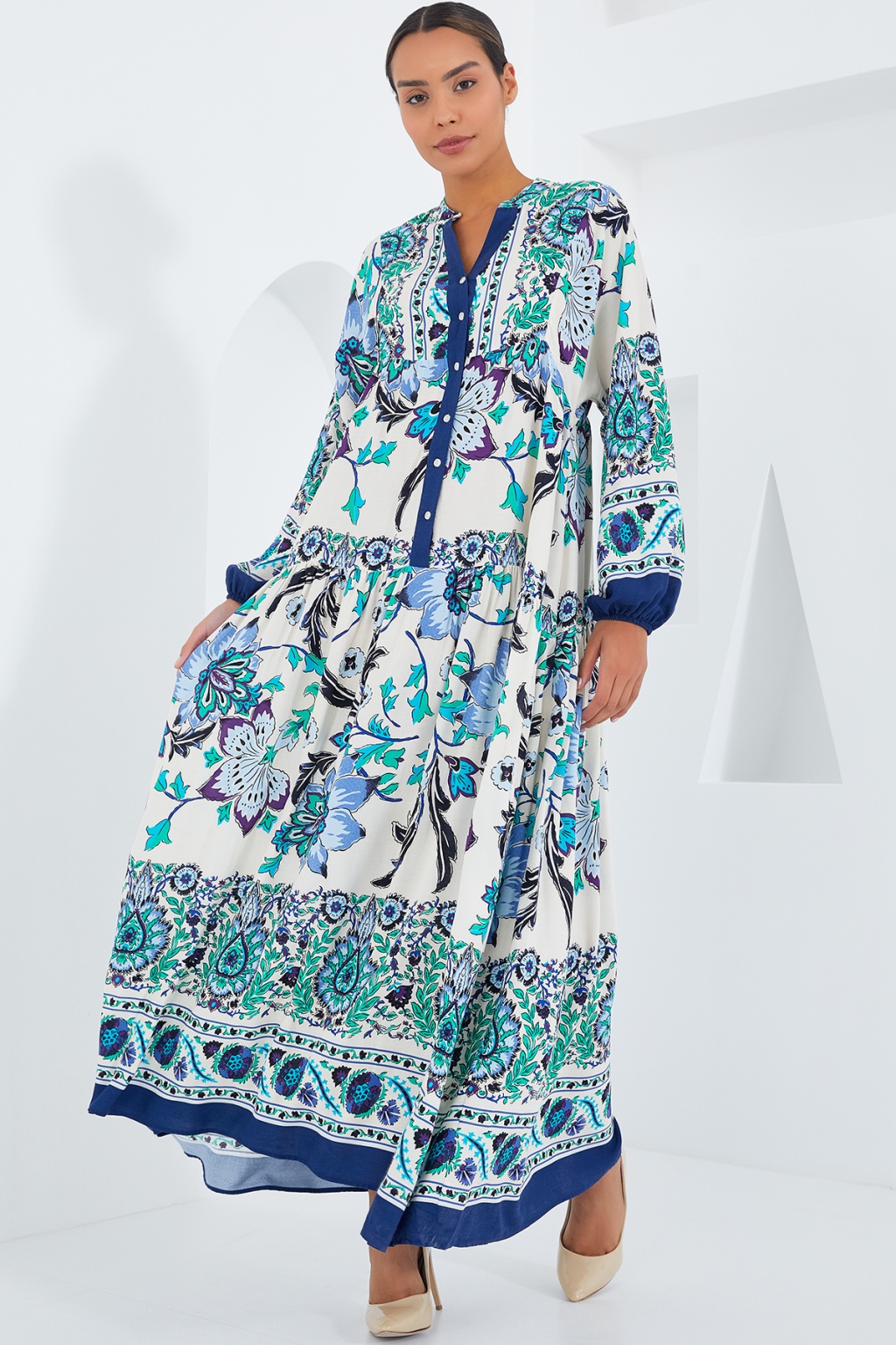 Kadın Lacivert Yeşil Viskon Tesettür Elbise 2423