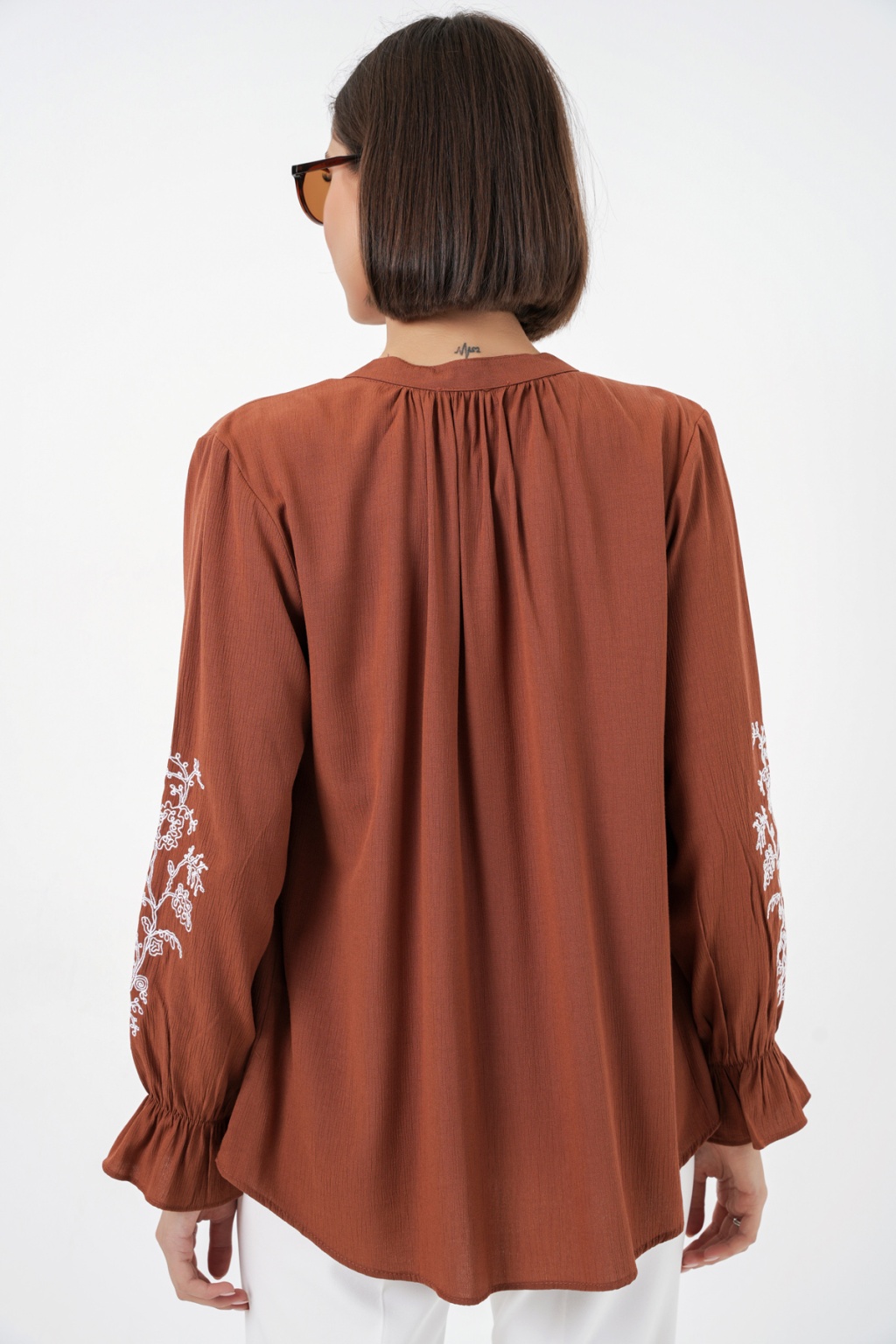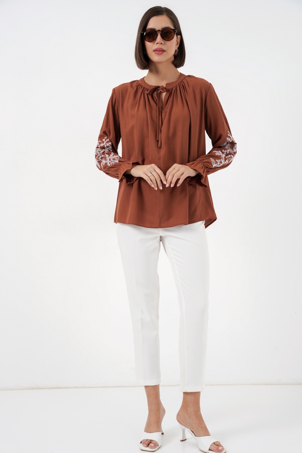 Kadın Nakışlı Örme Bluz 941 - Kiremit