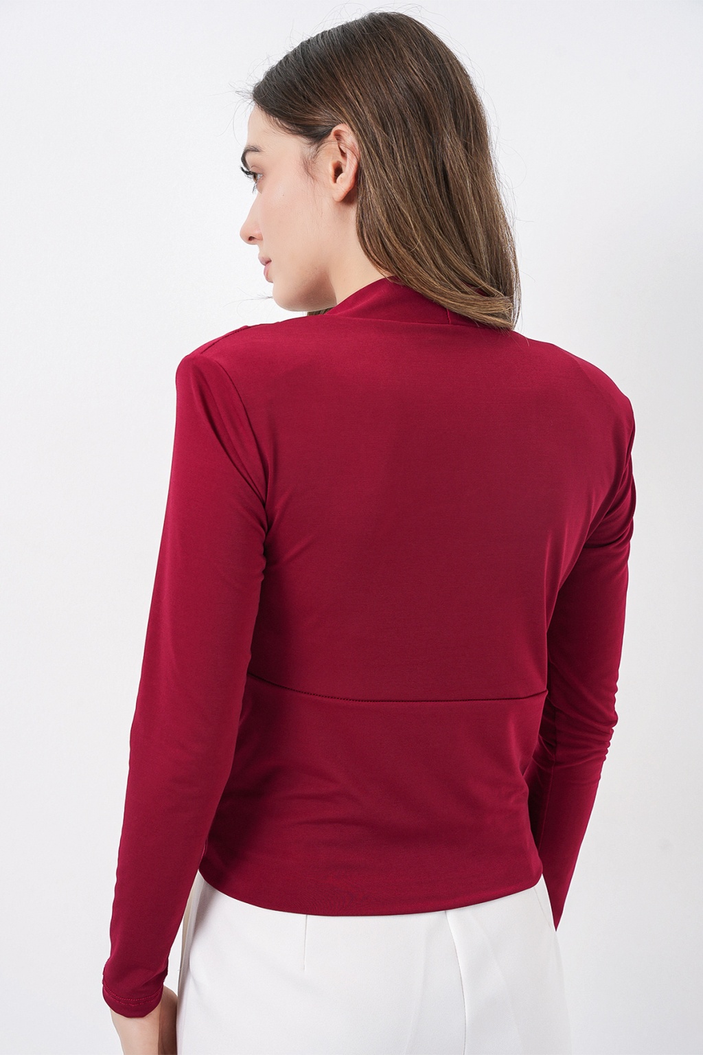 Kadın Omuz Vatkalı Kruvaze Yaka Bluz 942 - Bordo
