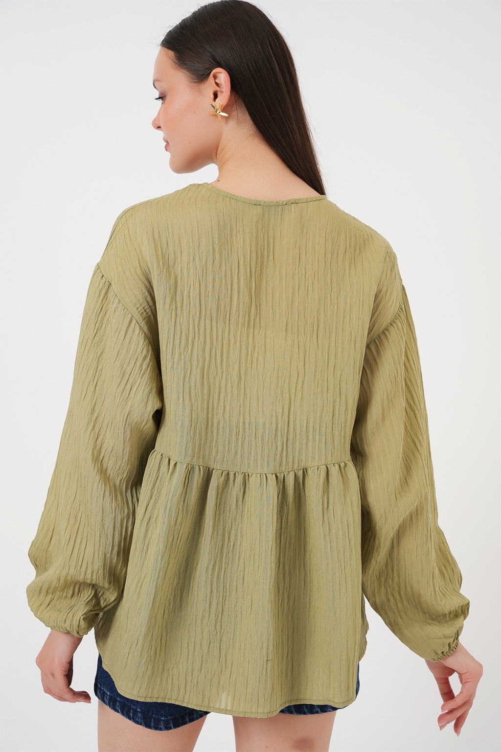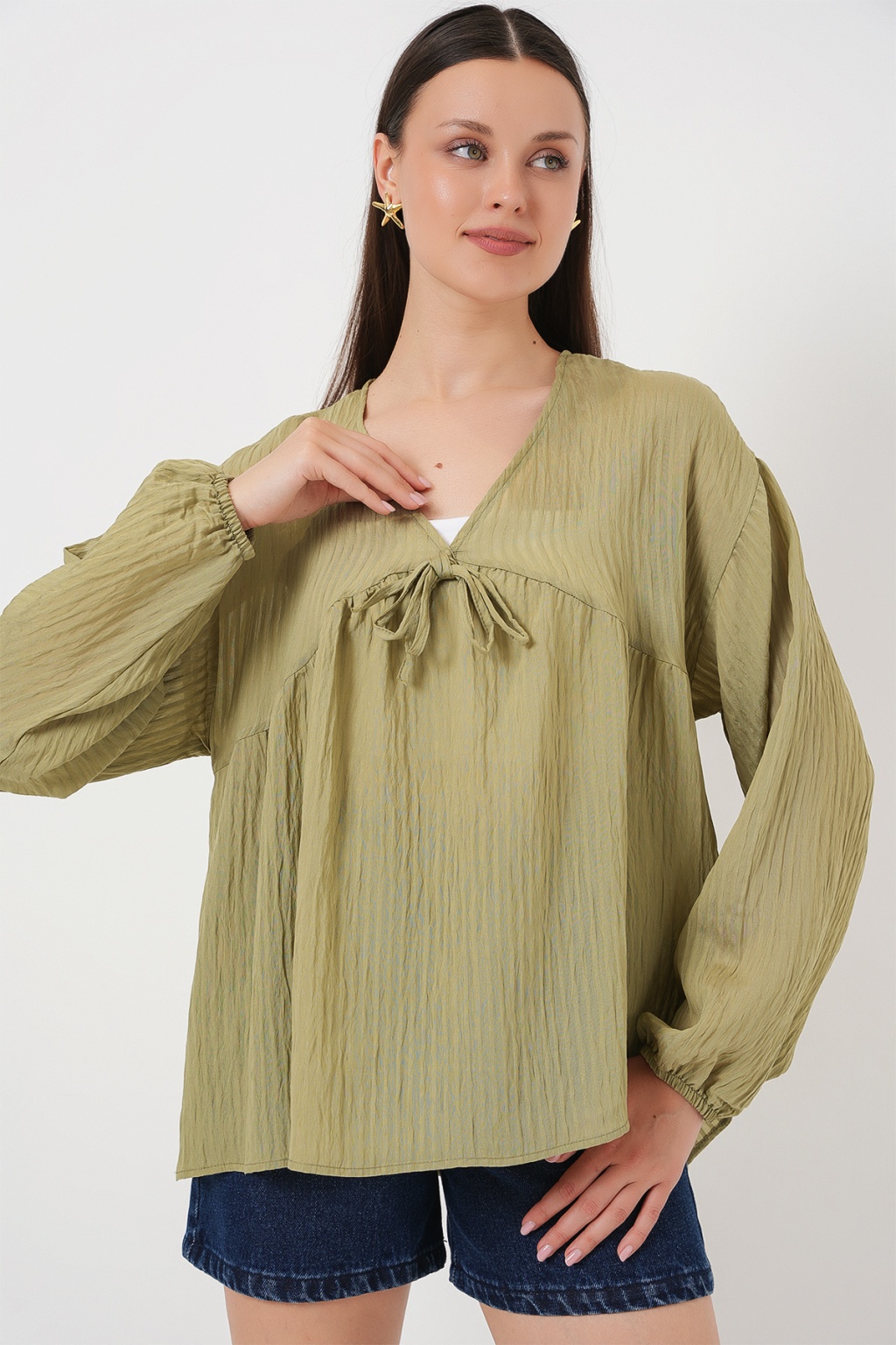 Kadin Önü Bagcikli Uzun Kol Bluz