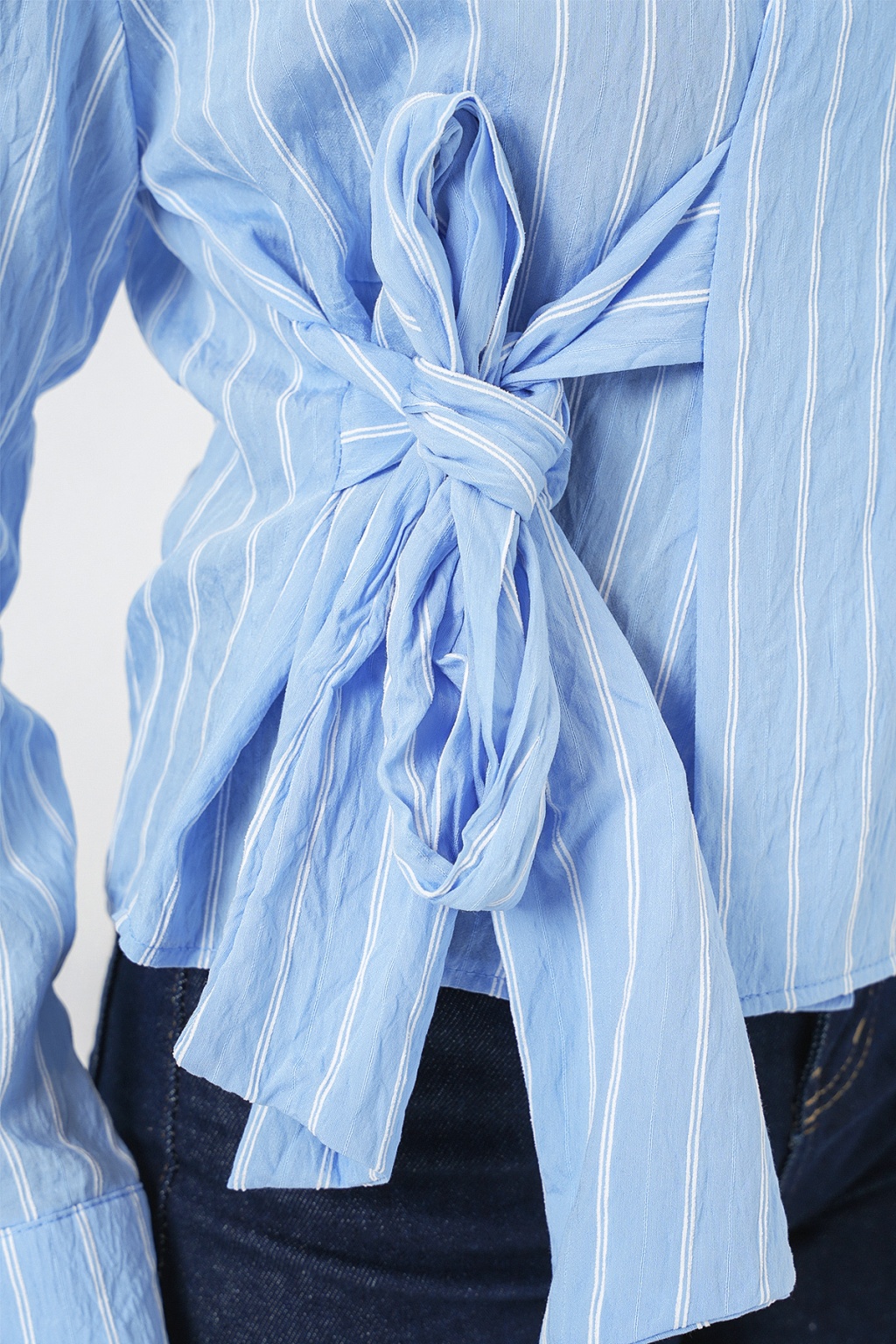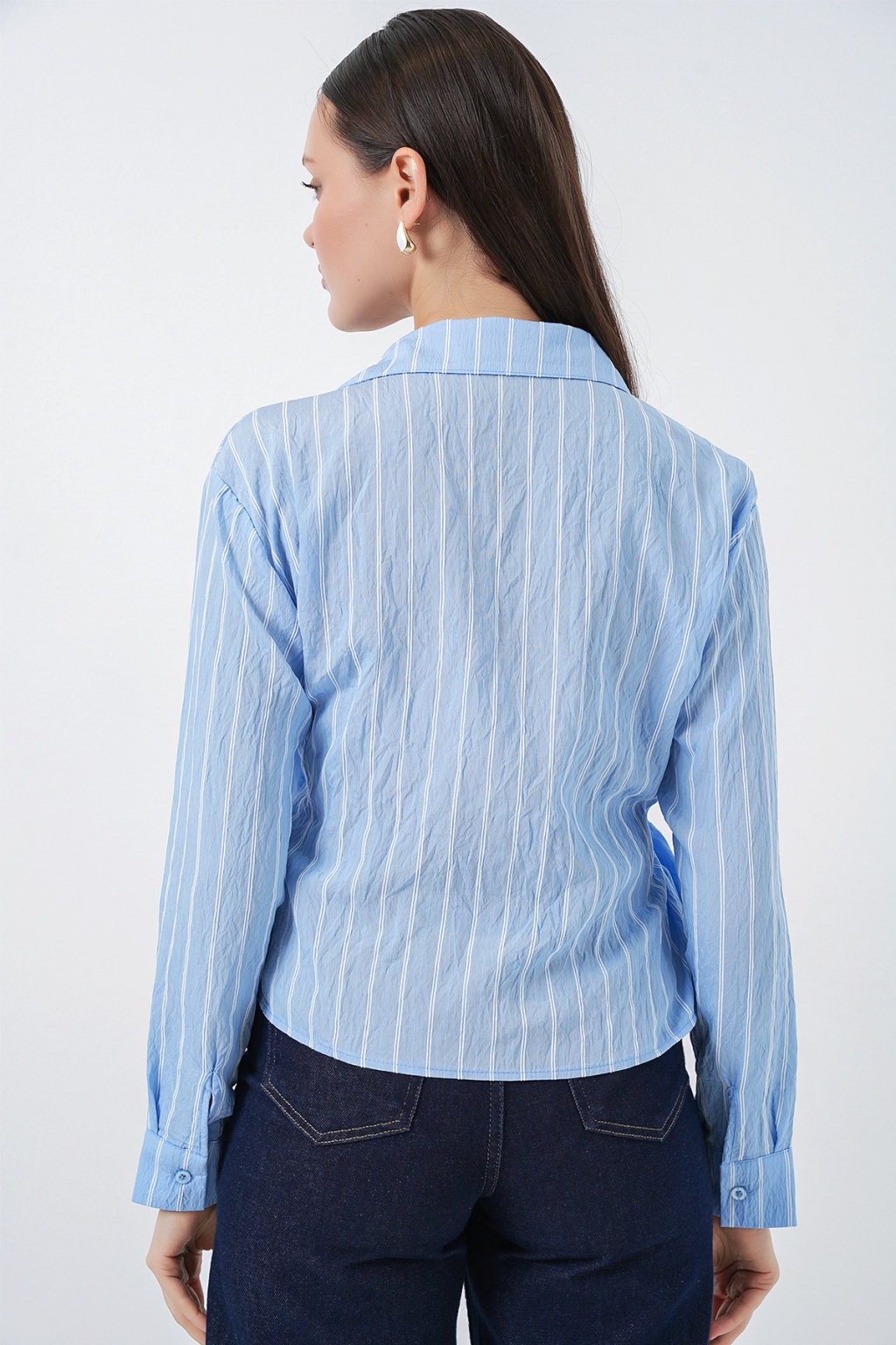 Kadın Önü Bağlamalı Çizgili Gömlek 20362 - Mavi