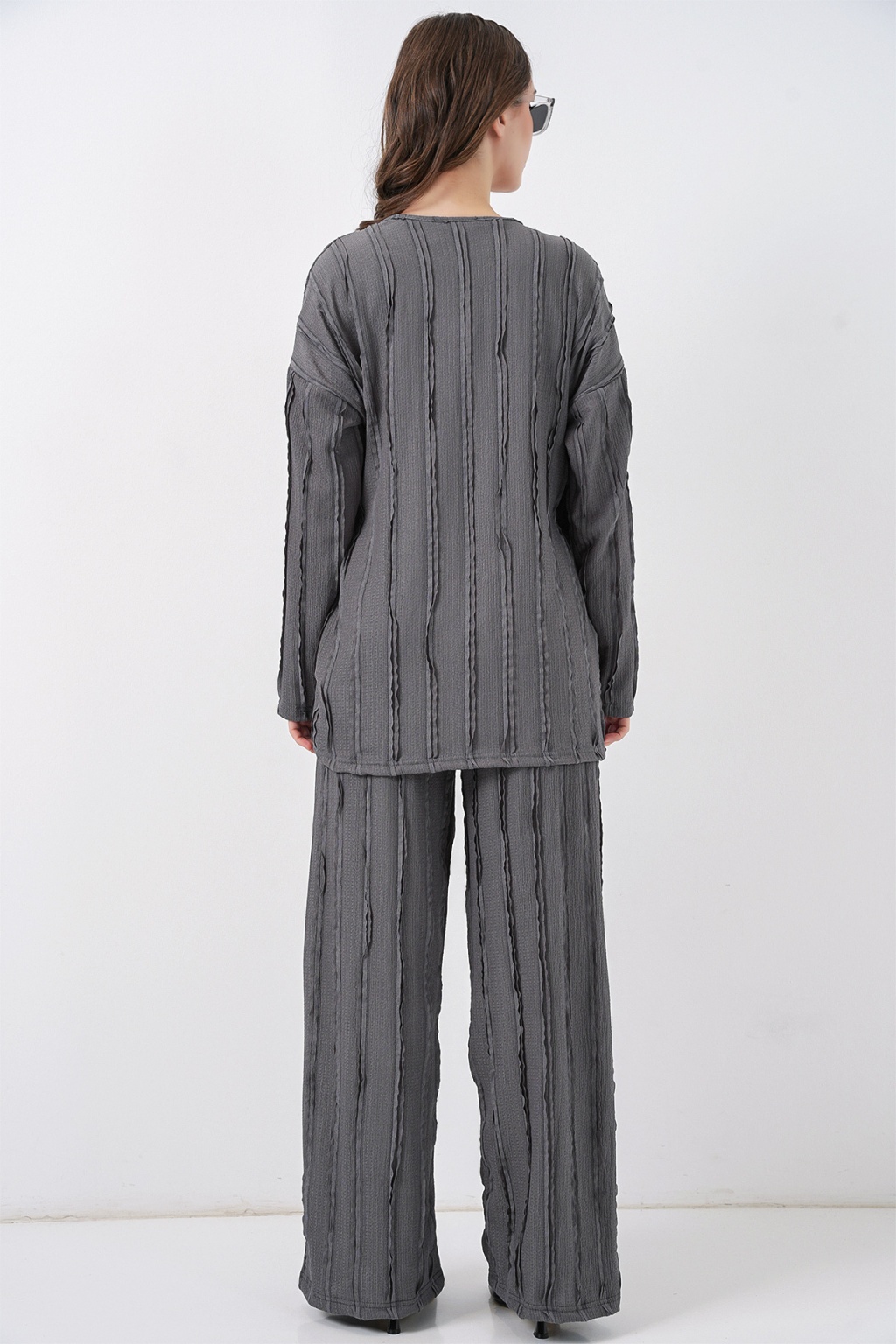 Kadın Örme Kimono Pantolon İkili Takım 30067 - Gri
