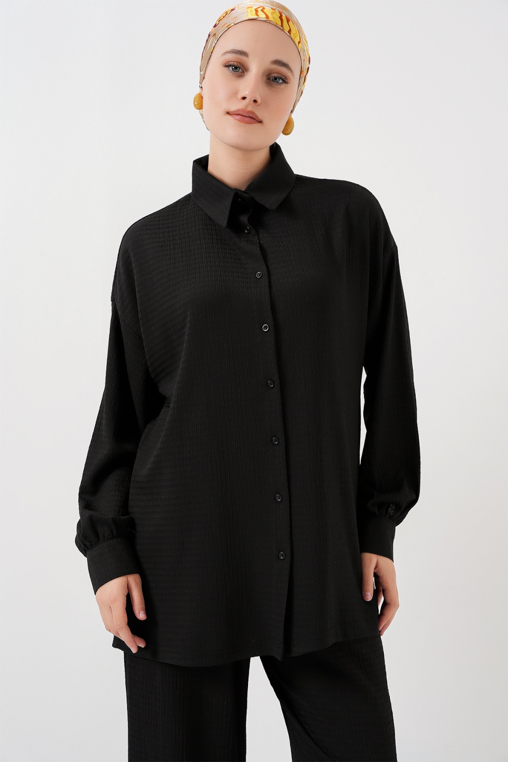Kadın Örme Tesettür Alt Üst Takım 6711 - Siyah