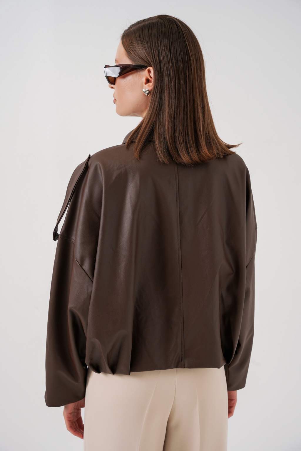 Kadın Oversize Deri Ceket 1055 - Kahverengi