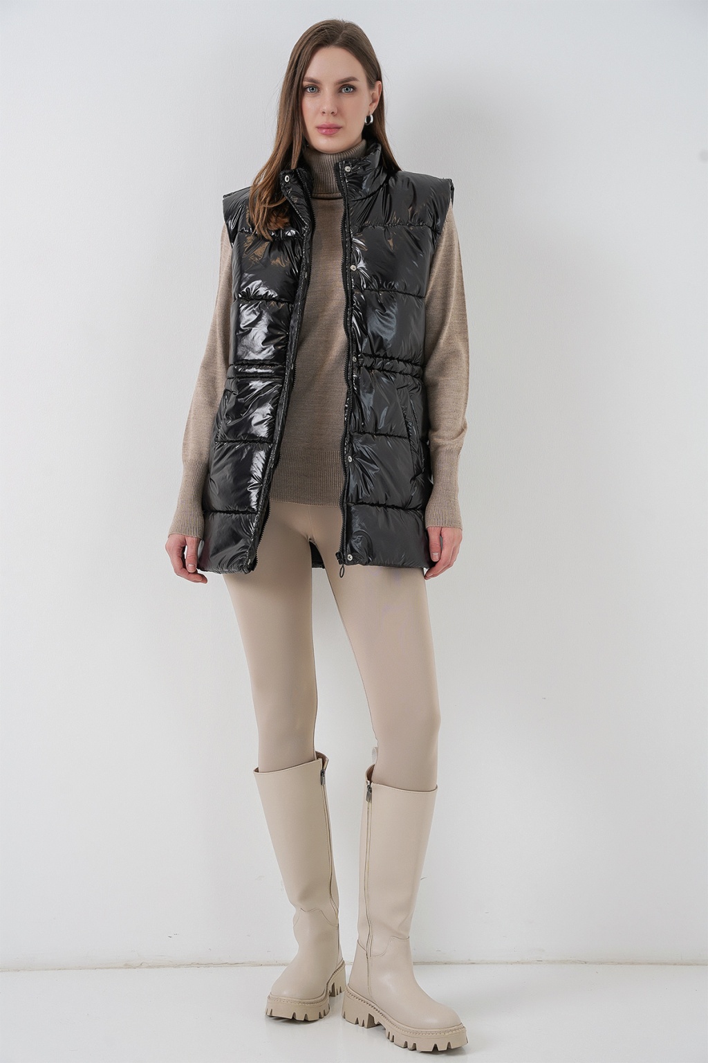 Kadın Parlak Şişme Yelek 5218 - Siyah