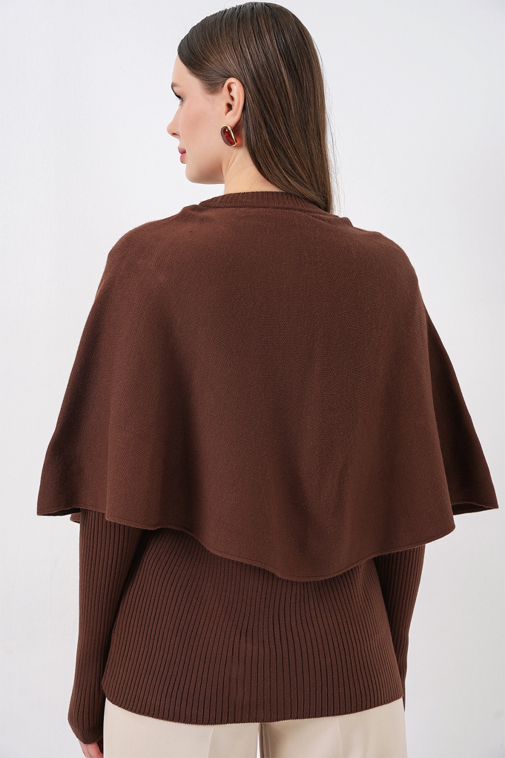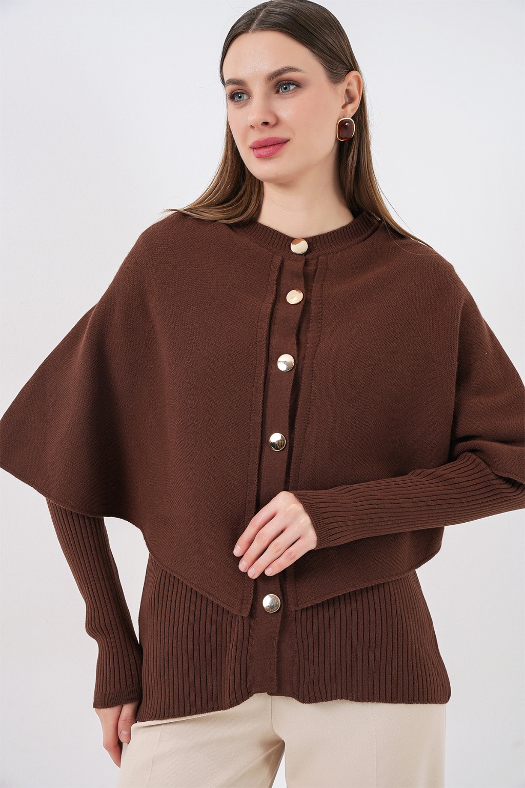 Kadın Pelerinli Triko Hırka 15967 - Kahverengi