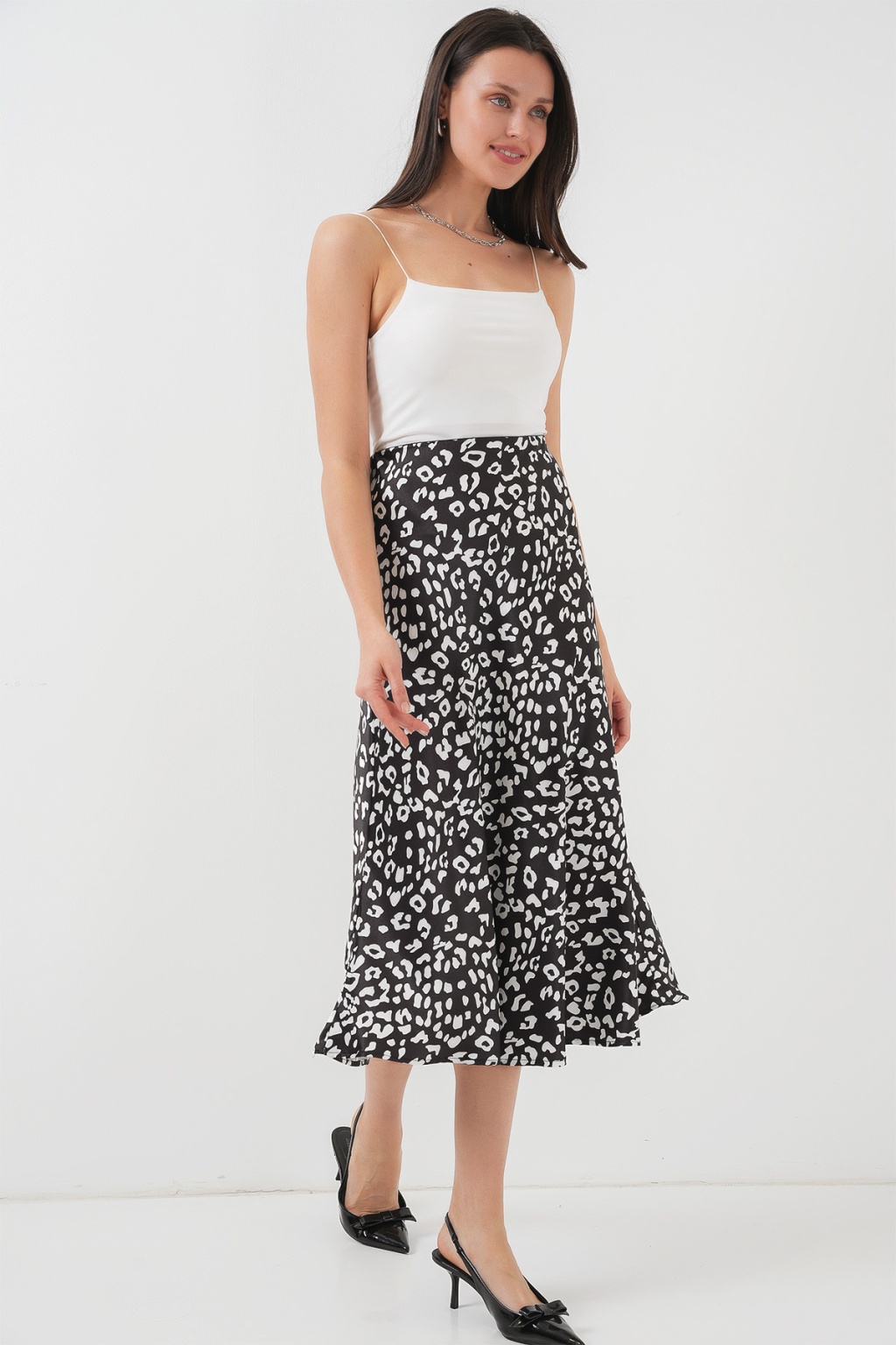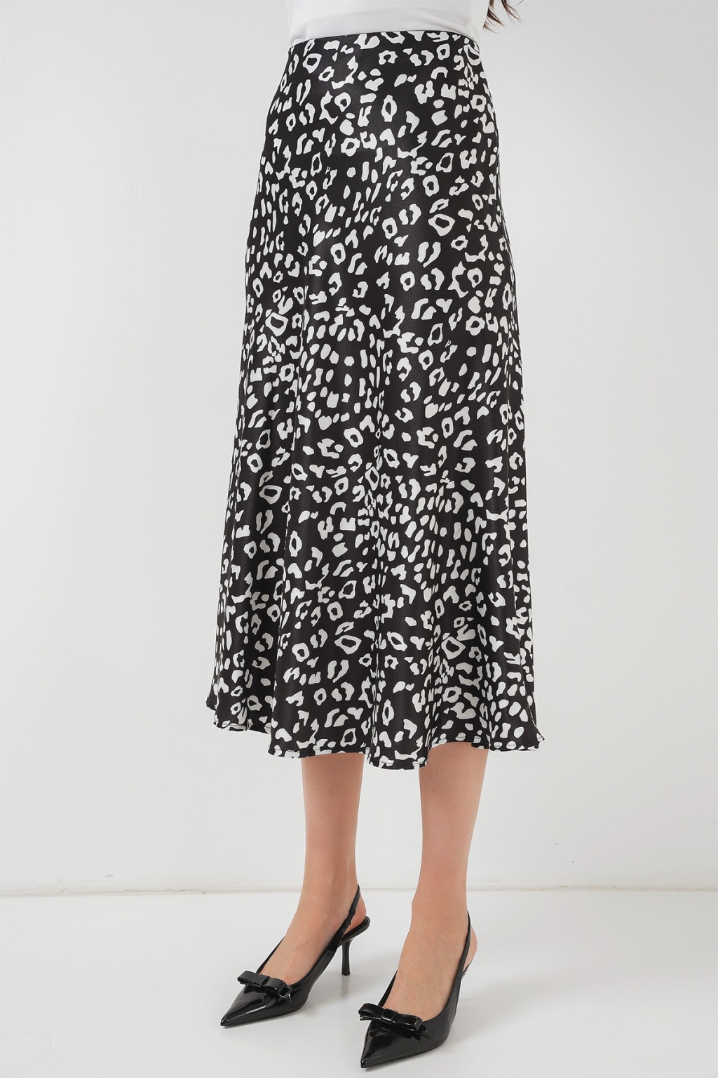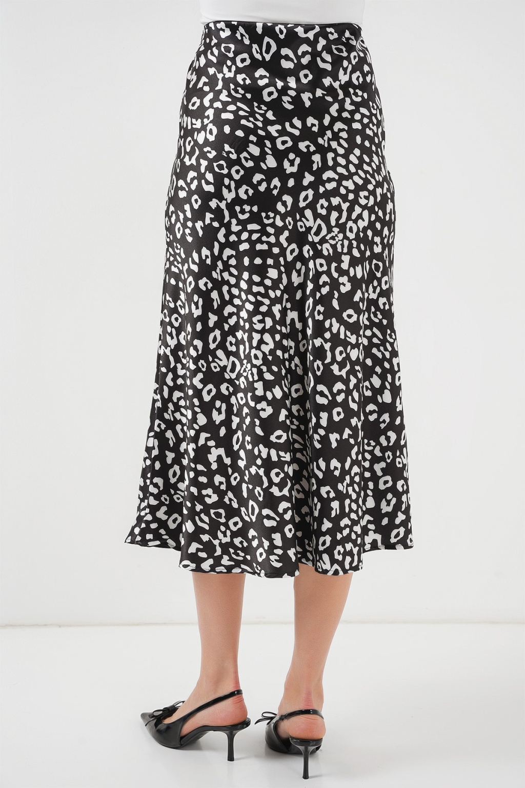 Kadın Siyah Beyaz Desenli Saten Etek 15806