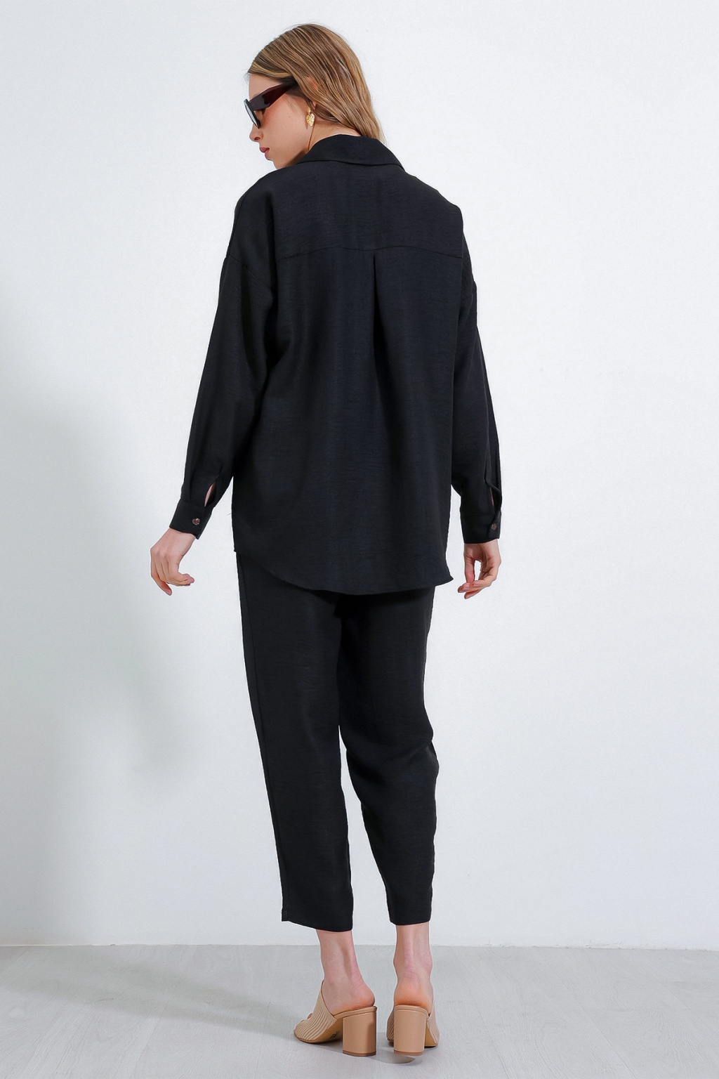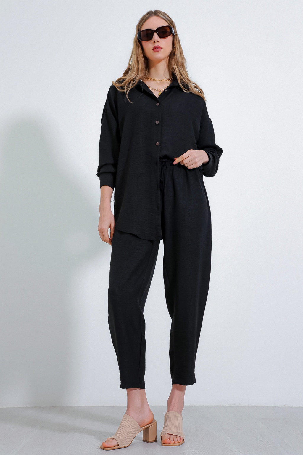 Kadın Siyah Oversize Keten Alt Üst Takım 6622