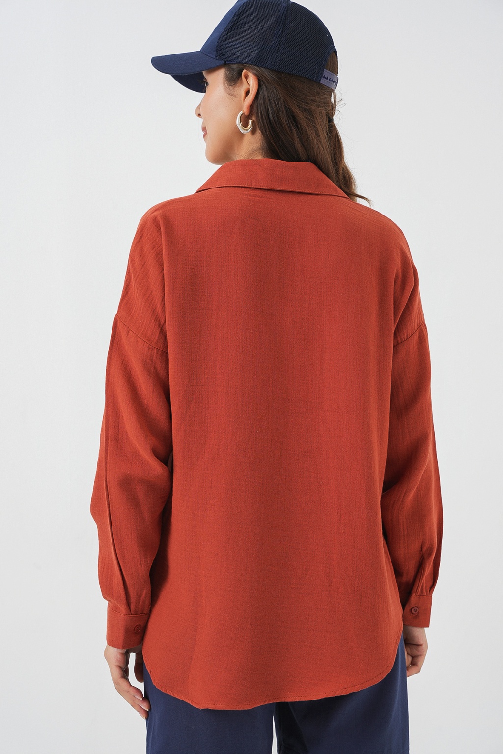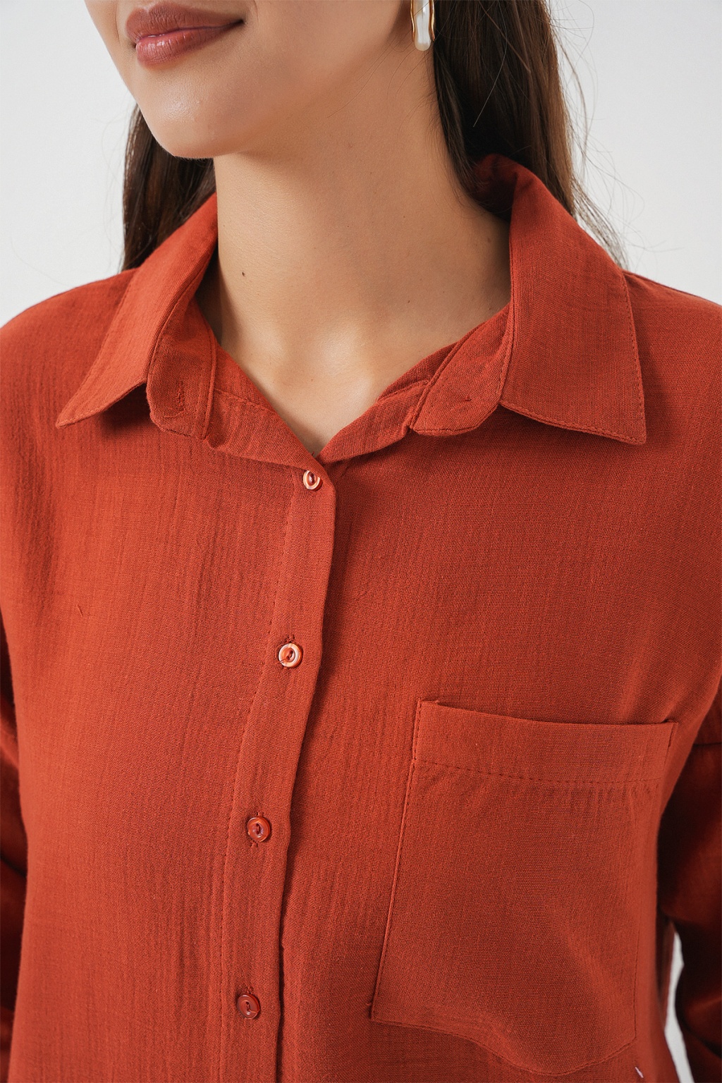Kadın Tek Cepli Oversize Müslin Gömlek 20353 - Kiremit