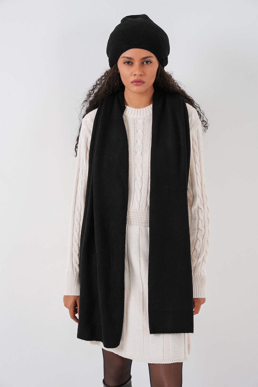 Kadın Triko Atkı Bere 15939 - Siyah