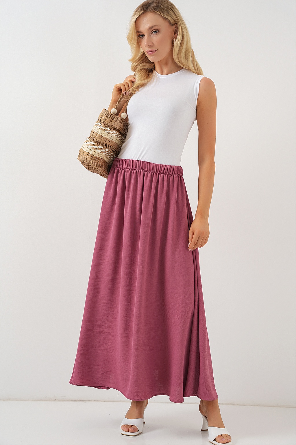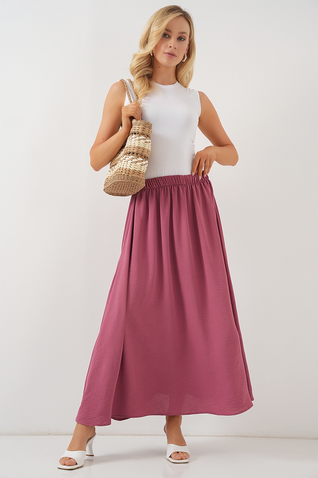 Kadın Uzun Ayrobin Etek 8050 - Gül Kurusu