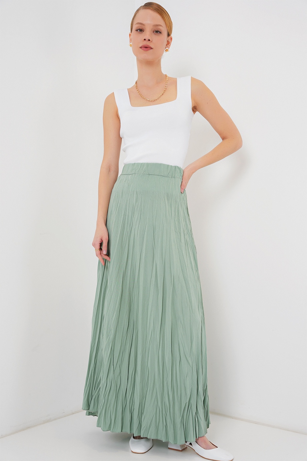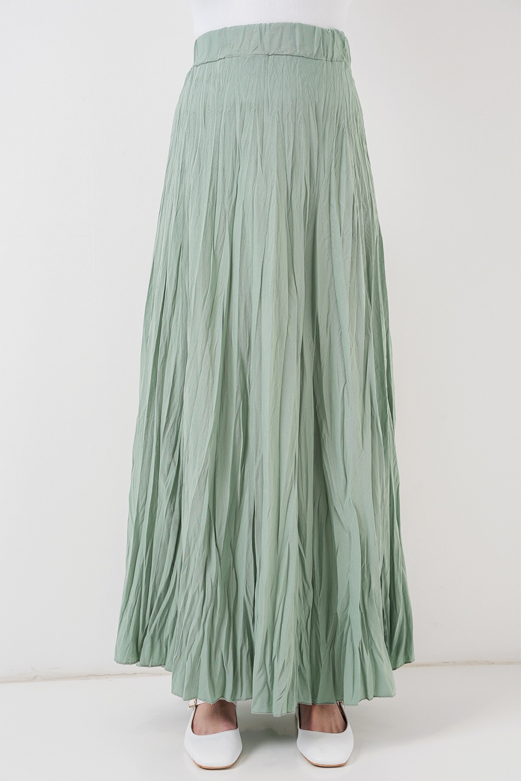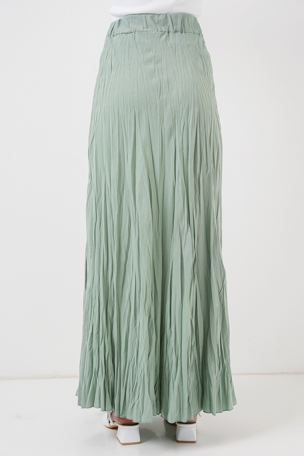 Kadın Uzun Kırışık Etek 8042 - Çağla