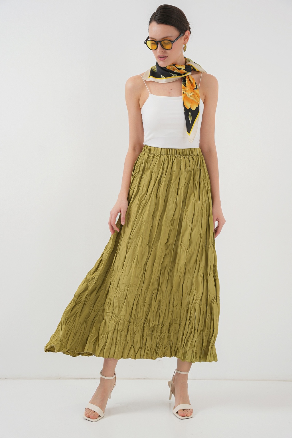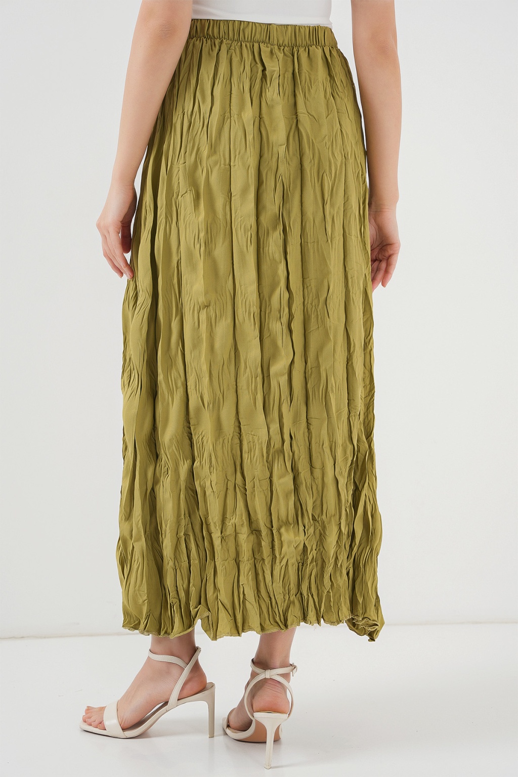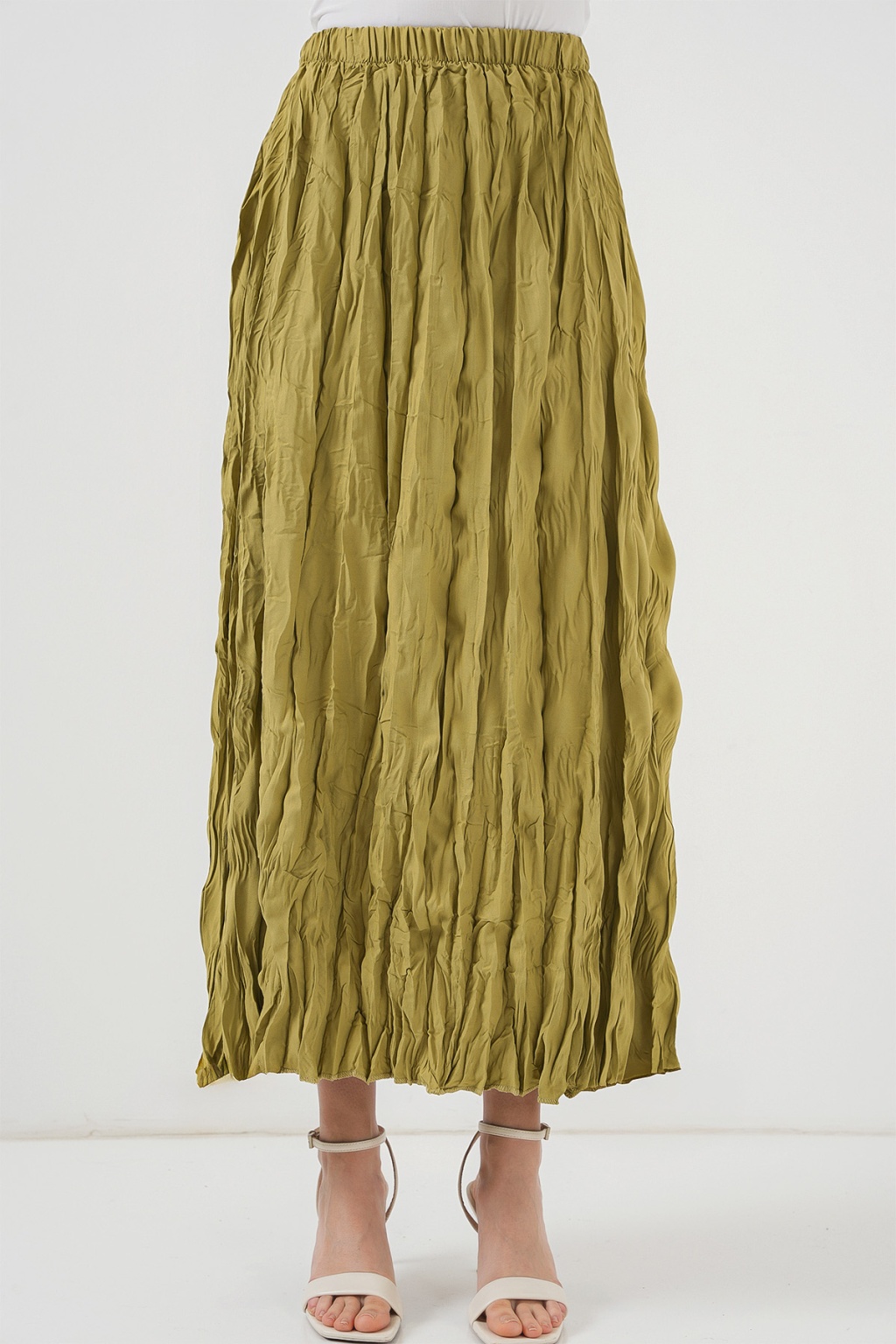 Kadın Uzun Kırışık Etek 8042 - E.Yeşil