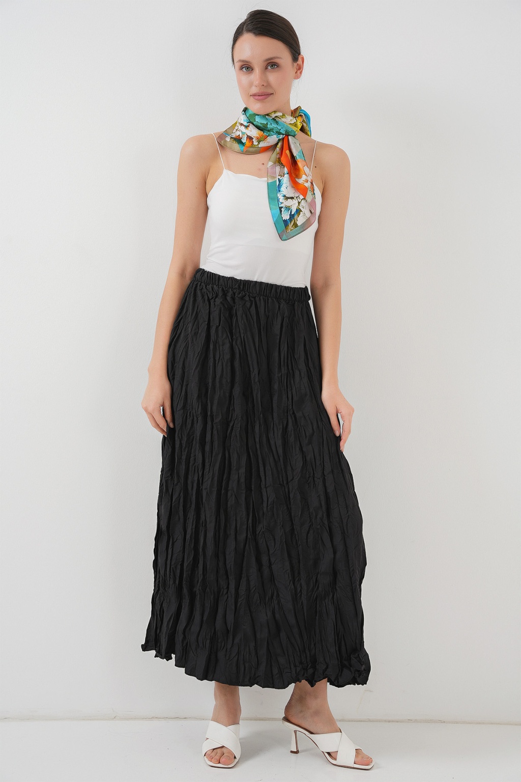 Kadın Uzun Kırışık Etek 8042 - Siyah