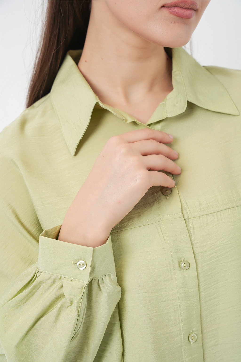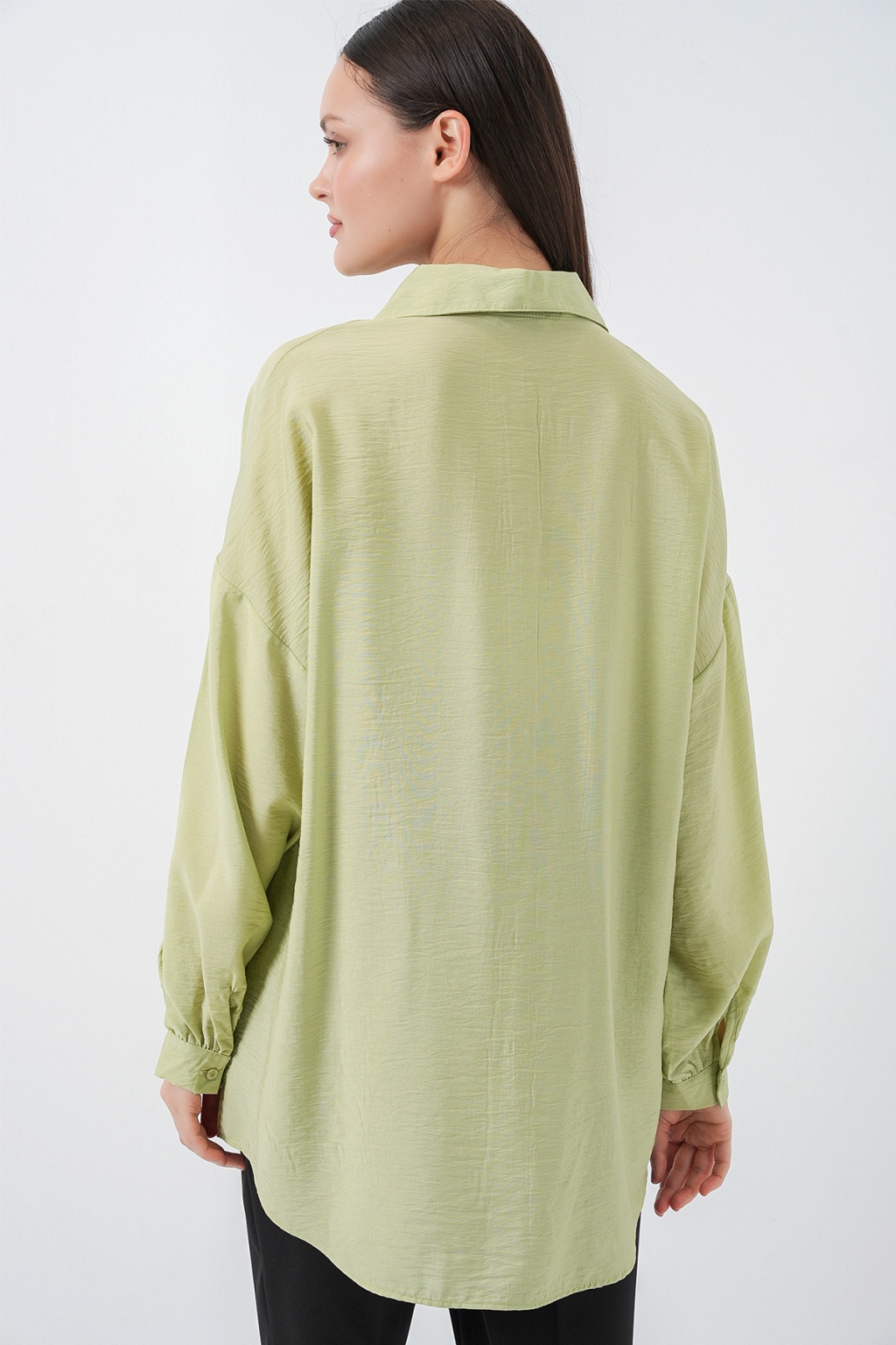 Kadın Uzun Oversize Gömlek 5965 - E.Yeşil