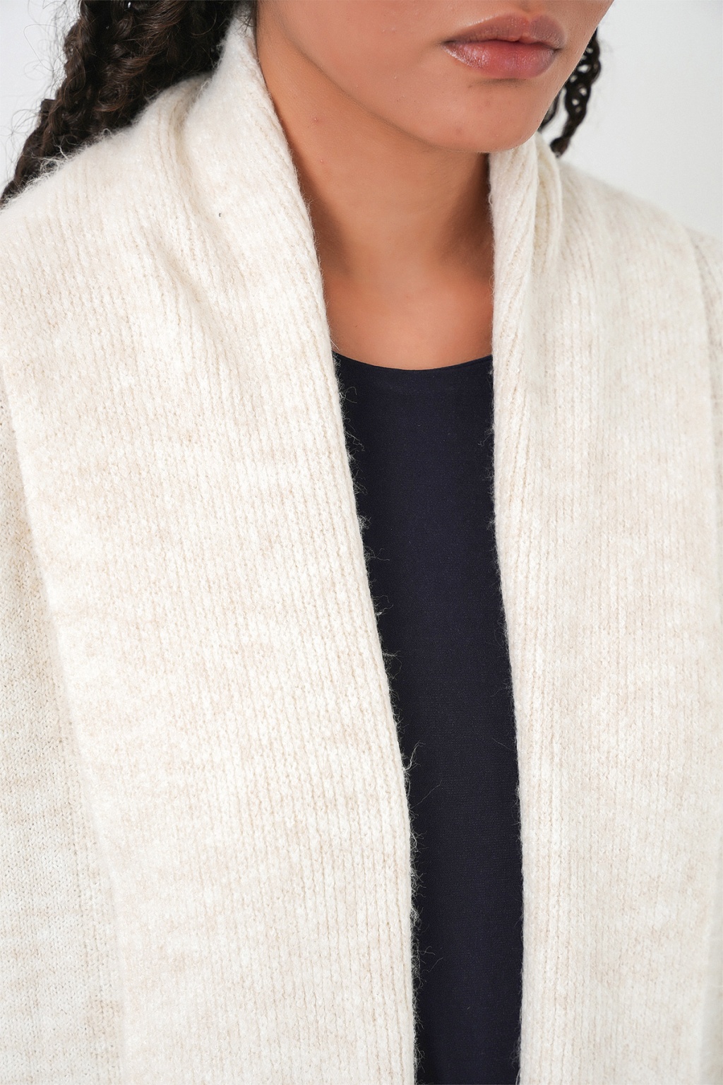 Kadin Yün Dokulu Katlama Yaka Uzun Triko Hirka