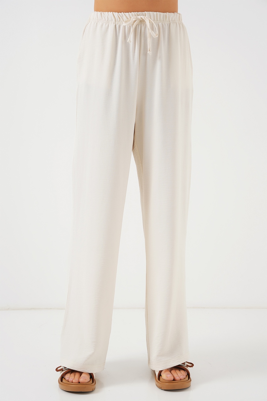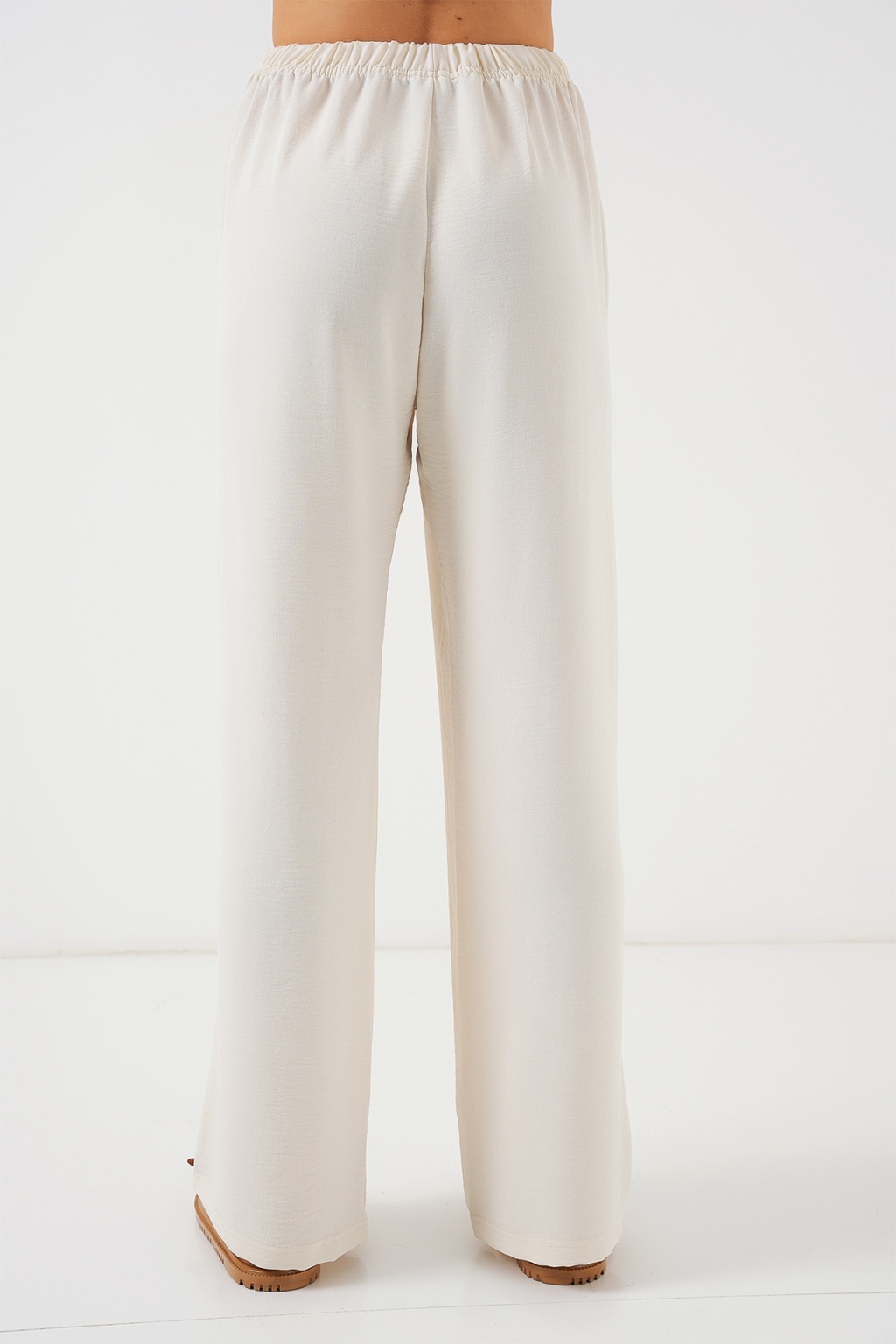 Kadın Yüksek Bel Bol Paça Pantolon - Krem