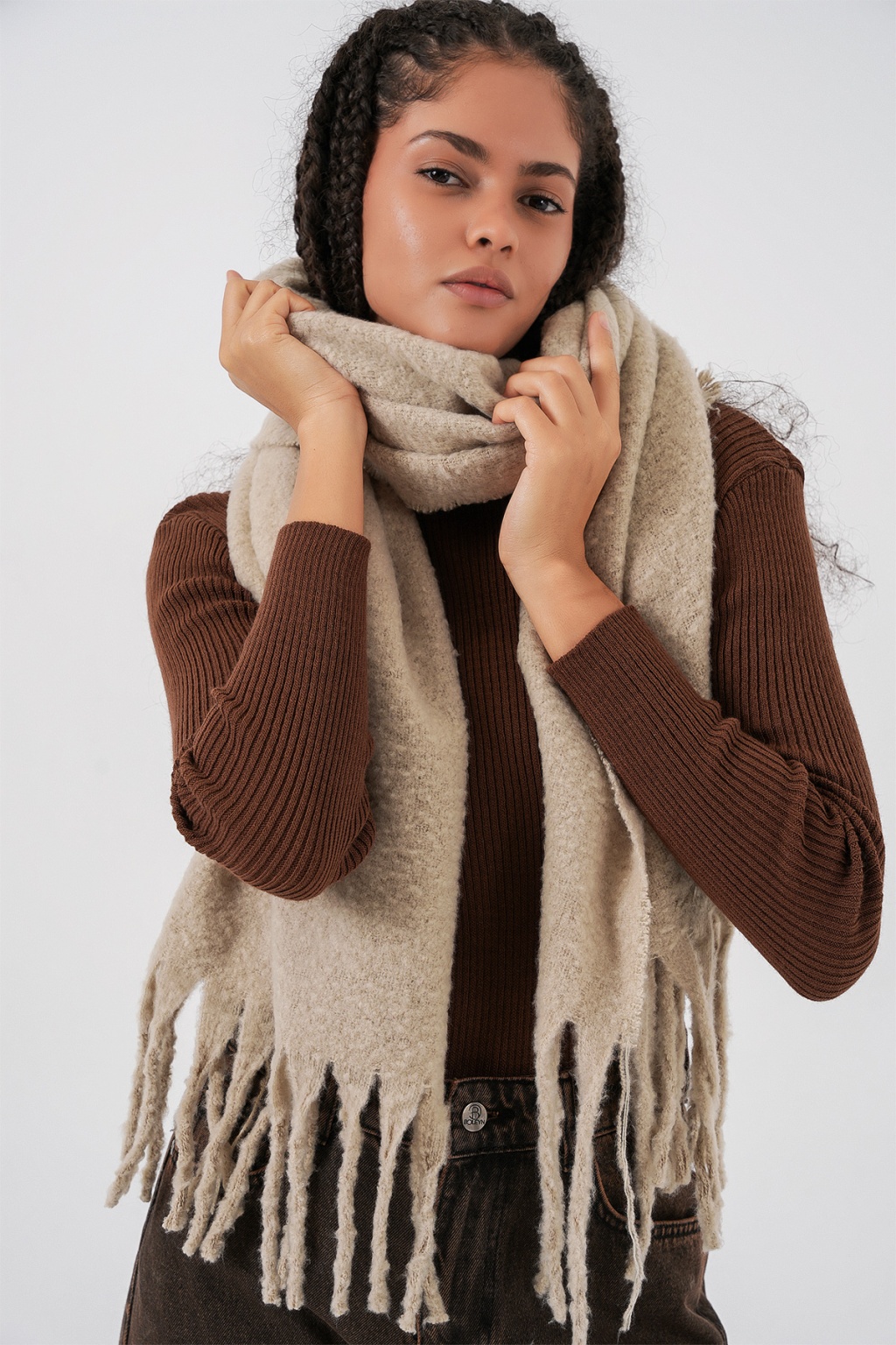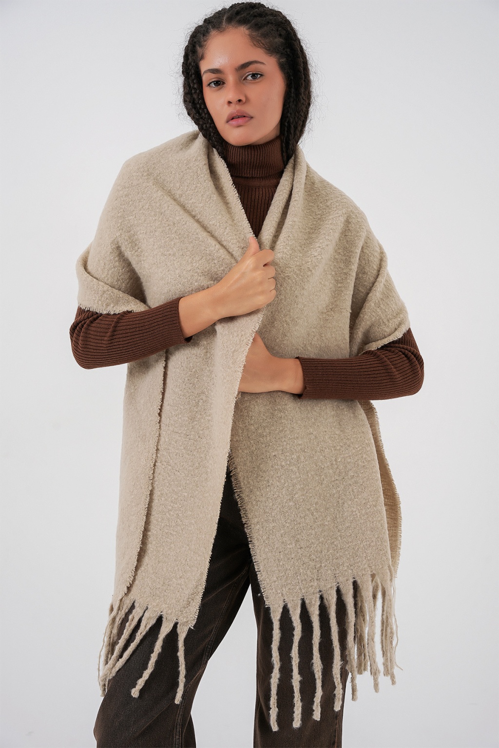 Kadın Yumuşak Dokulu Kalın Şal Atkı 15951 - A.Bej