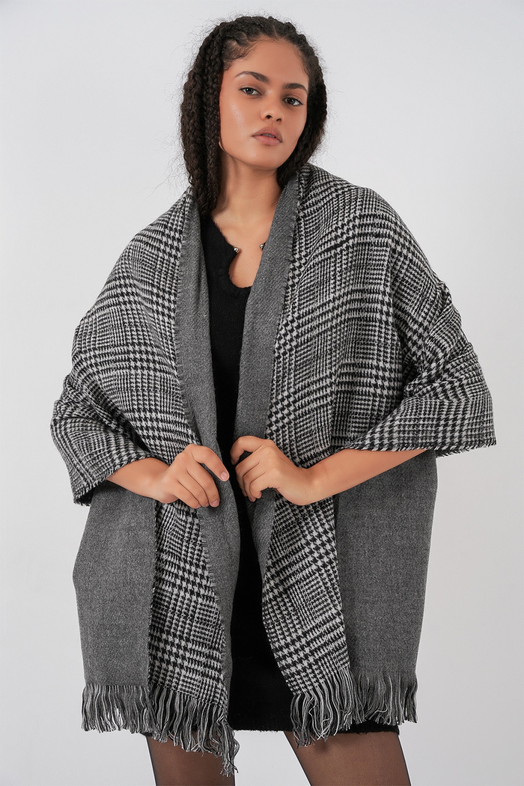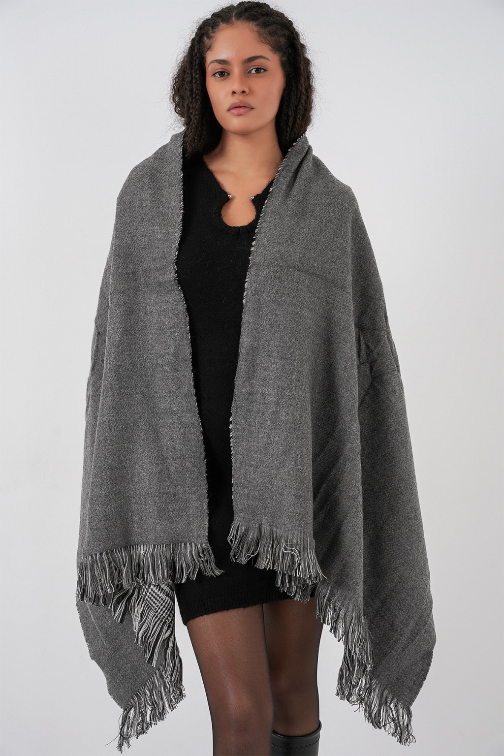 Kadın Yumuşak Dokulu Kalın Şal Atkı 15951 - Antrasit