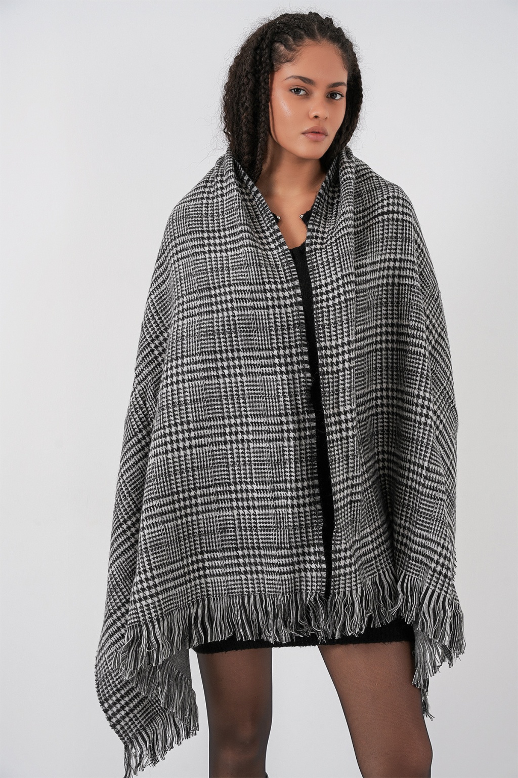 Kadın Yumuşak Dokulu Kalın Şal Atkı 15951 - Y.Siyah