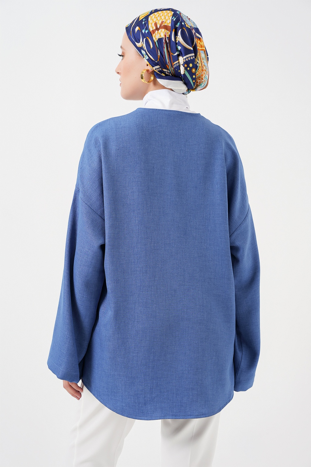 Keten Tesettür Kimono 5968 - İndigo