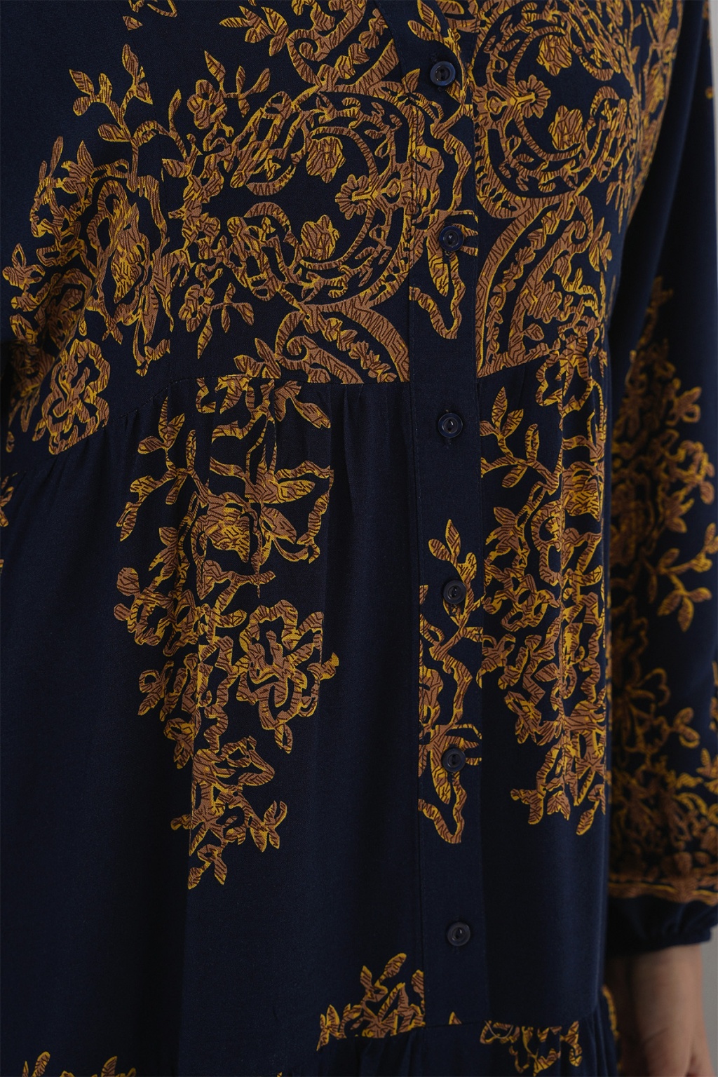 Lacivert Gold Desenli Tesettür Elbise 2423