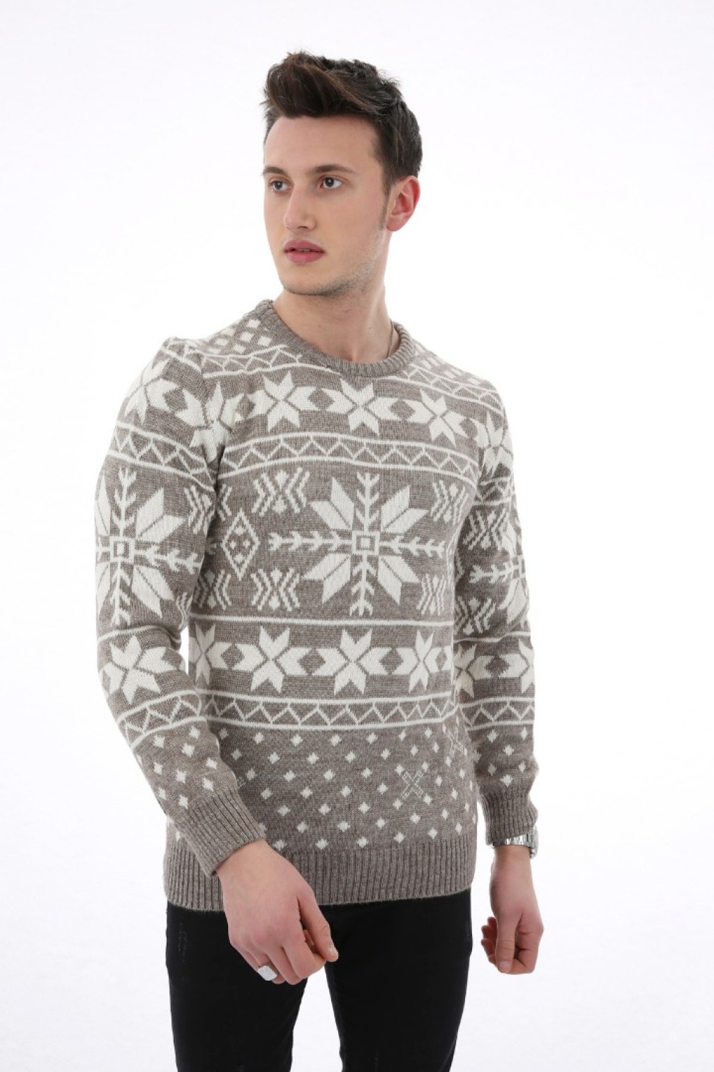 Noktalı Desenli Kahve Kalın Kışlık Günlük Triko Kazak
