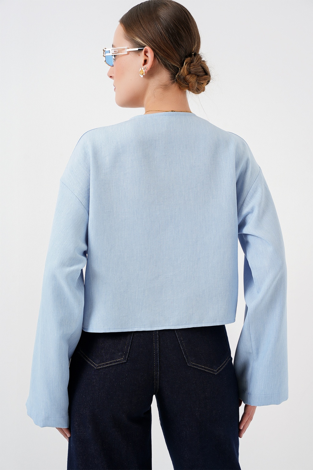 Önü Bağlamalı Keten Kimono 960 - Mavi
