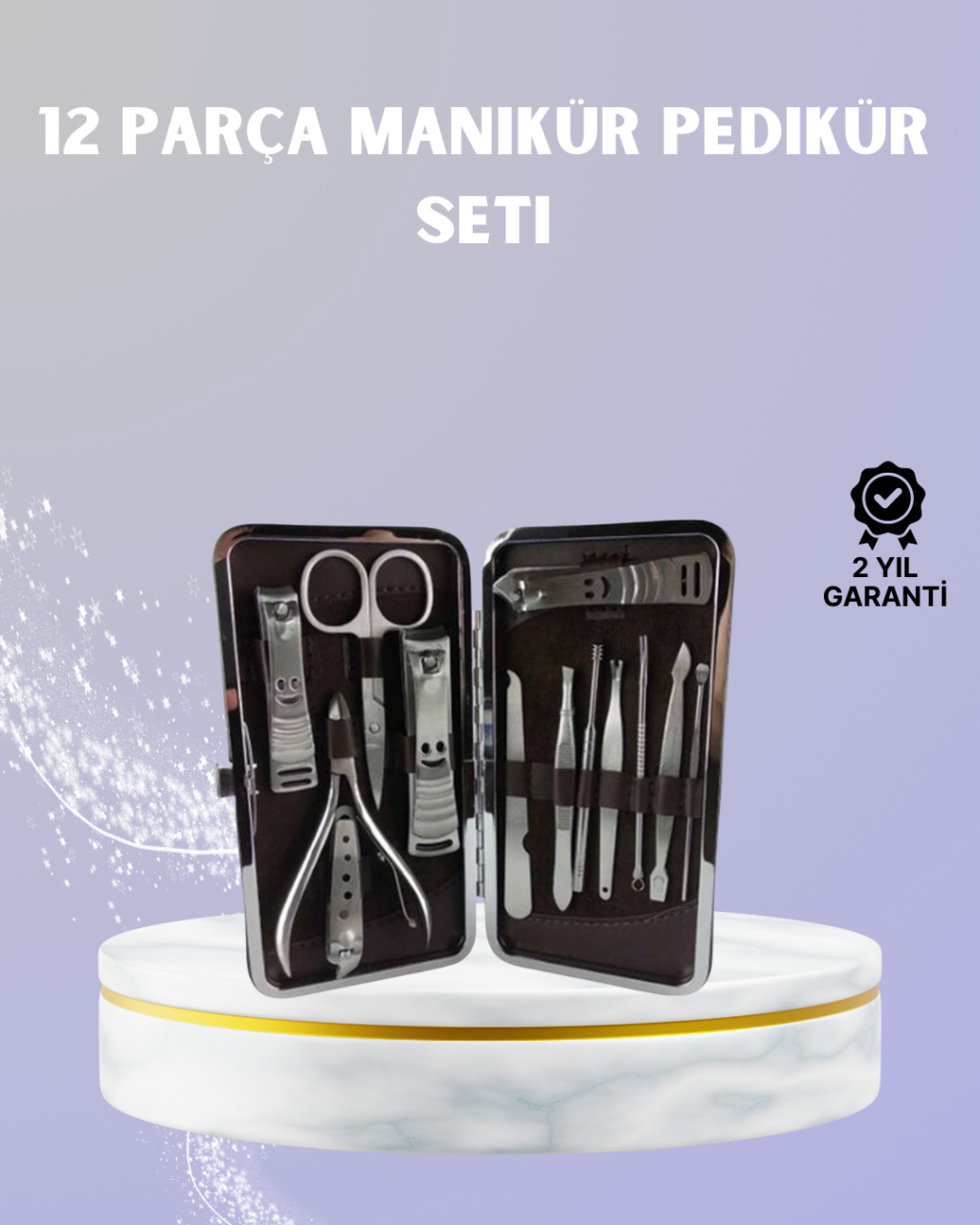 Özel Deri Çantalı 12 Parça Manikür Pedikür Bakım Seti Paslanmaz Çelik