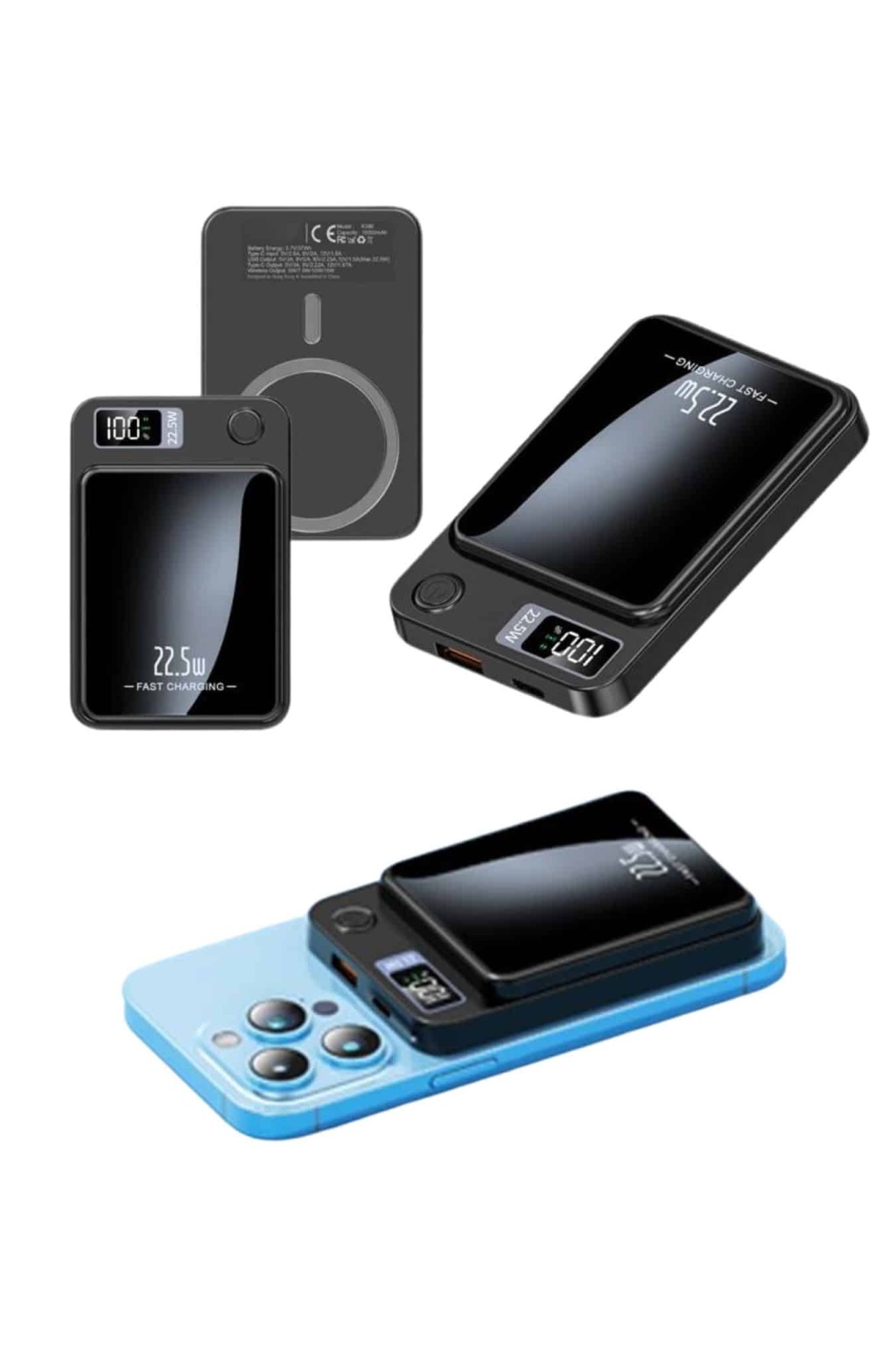 22.5W Magsafe Kablosuz Şarjlı Powerbank Dijital Ekran ve Hızlı Şarj