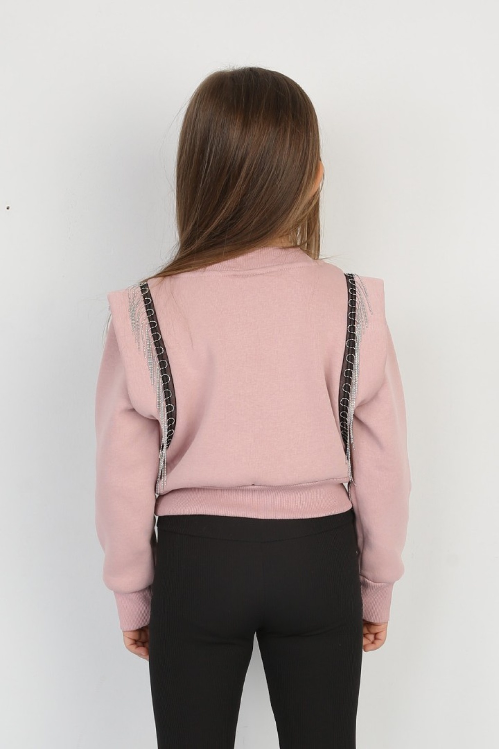 Üç İplik Şardonlu Omuz Detaylı Kız Çocuk Günlük Crop Sweatshirt