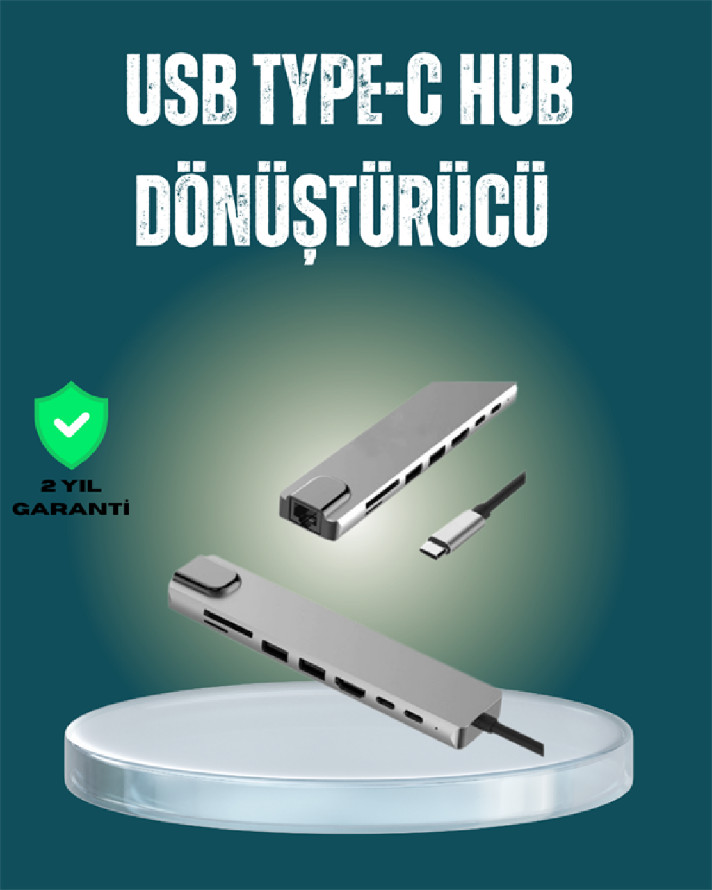 Usb Type-c Hub Dönüştürücü Çevirici Çoklayıcı Macbook Çevirici 8 Portlu