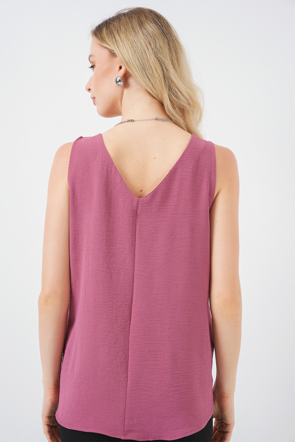 V Yaka Sıfır Kol Bluz 950 - A.Gül Kurusu